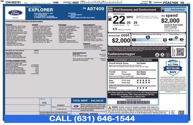 CARFAX One-Owner. 2023 Ford Explorer Oxford White * NYS INSPECTION INCLUDED *, * FULL INTERIOR / EXTERIOR DETAIL *, * BLUETOOTH *, * LIMITED NYS LEMON LAW WARRANTY INCLUDED *, *FRESH OIL CHANGE *, * 150 MULTI POINT INSPECTION *, 4WD, 3rd row seats: bench, Exterior Parking Camera Rear, Heated ActiveX Captain's Chairs, Heated front seats, Heated Steering Wheel, Power driver seat, Power Liftgate, SYNC 3/Apple CarPlay/Android Auto. 20/27 City/Highway MPG Priced below KBB Fair Purchase Price!