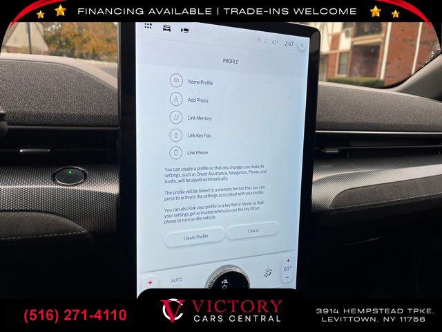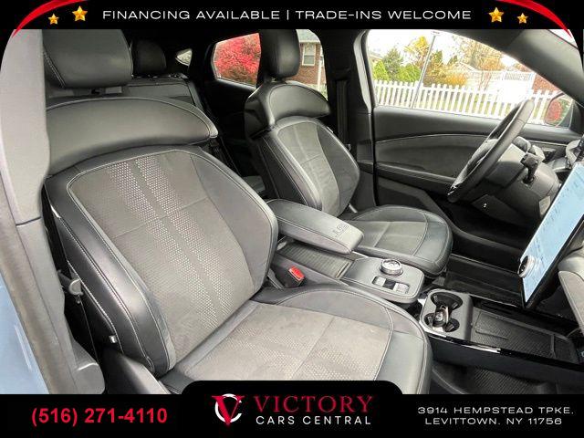 All pricing and details are believed to be accurate, but we do not warrant or guarantee such accuracy. The prices shown above may vary from region to region, as will incentives, and are subject to change. All cars are sold cosmetically As-Is. Vehicle information is based on standard equipment and may vary from vehicle to vehicle. Call or email for complete vehicle specific information. Price Does not include tax, title, license, destination charges, finance charges, or any reconditioning fees. Our special Internet pricing cannot be extended without a printed copy of the online pricing. The in-store price may exceed our special online pricing. Sorry but we cannot extend special pricing without a printed copy of the on-line pricing. To take advantage of our special Internet discounts, please print this page and present it to your salesperson at the BEGINNING of the transaction. Special Internet pricing posted on this ad/coupon/promotion is only available to customers who reference such pricing & present the ad at time of sale otherwise our store standard list price applies. Please be advised this ad is a Special Internet only ad. Prices can be modified and adjusted weekly, daily and sometimes hourly due to inquiries, bidding and website traffic on any Vehicles. All displayed inventory is subject to prior sale and all prices expire at midnight on the date displayed. Every reasonable effort has been made to ensure the accuracy of the information contained on this site, however absolute accuracy cannot be guaranteed. Advertised special excludes state tax, title, license, registration, NY state inspection, NYS tire recycling fee, finance charges, and dealer fees if applicable. Please verify any information in question with the dealership sales manager. This is easily done by calling us at (516) 271-4110 or by visiting us at the dealership. **With approved credit. Vapor Blue Metallic 2023 Ford Mustang Mach-E GT AWD Single-Speed Automatic Dual Electric Motor