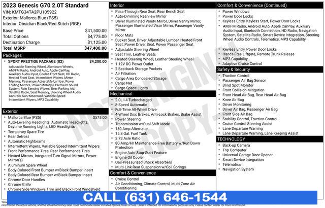 For more information on this 2023 Genesis G70, please call Stream Auto Outlet Islip at (631) 646-1544 or with the contact form on this page. This vehicle's vin number is KMTG34TA2PU105922 and is recorded as being in stock at Stream Auto Outlet Islip at 2232 Sunrise Hwy in Islip. See all cars from this dealership.