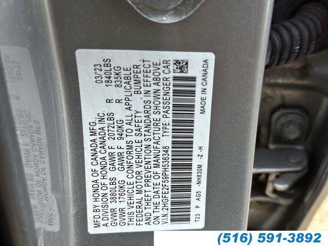 For more information on this 2023 Honda Civic, please call Honda of Valley Stream at (516) 591-3892 or with the contact form on this page. This vehicle's vin number is 2HGFE2F59PH536348 and is recorded as being in stock at Honda of Valley Stream at 164 E. Sunrise Highway in Valley Stream. See all cars from this dealership.
