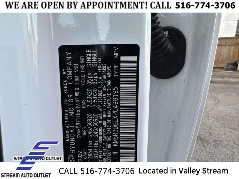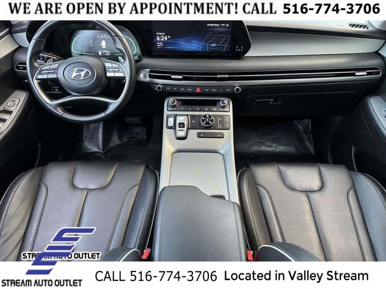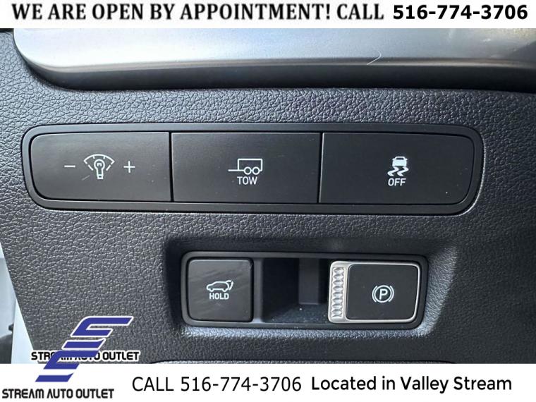 Navigation System, Cargo Package, Option Group 01, 6 Speakers, AM/FM radio: SiriusXM, Radio data system, Radio: AM/FM/MP3 Audio System, Rear audio controls, Air Conditioning, Automatic temperature control, Front dual zone A/C, Rear air conditioning, Rear window defroster, Power driver seat, Power steering, Power windows, Remote keyless entry, Steering wheel mounted audio controls, Auto-leveling suspension, Four wheel independent suspension, Speed-sensing steering, Traction control, 4-Wheel Disc Brakes, ABS brakes, Dual front impact airbags, Dual front side impact airbags, Emergency communication system: Blue Link Connected Car Service (3-year complimentary subscription), Front anti-roll bar, Knee airbag, Low tire pressure warning, Occupant sensing airbag, Overhead airbag, Rear anti-roll bar, Rear side impact airbag, Power moonroof, Power Liftgate, Brake assist, Electronic Stability Control, Exterior Parking Camera Rear, Auto High-beam Headlights, Delay-off headlights, Fully automatic headlights, First Aid Kit, Panic alarm, Security system, Speed control, Auto-dimming door mirrors, Bumpers: body-color, Heated door mirrors, Power door mirrors, Spoiler, Turn signal indicator mirrors, Apple CarPlay & Android Auto, Auto-dimming Rear-View mirror, Carpeted Floor Mats, Driver door bin, Driver vanity mirror, Front reading lights, Garage door transmitter: HomeLink, Illuminated entry, Outside temperature display, Overhead console, Passenger vanity mirror, Rear reading lights, Tachometer, Telescoping steering wheel, Tilt steering wheel, Trip computer, 3rd row seats: split-bench, Front Bucket Seats, Front Center Armrest, H-Tex Leatherette Seat Trim, Heated Front Bucket Seats, Heated front seats, Power passenger seat, Reclining 3rd row seat, Split folding rear seat, Cargo Blocks, Cargo Net, Cargo Tray, Passenger door bin, Alloy wheels, Wheels: 20" x 7.5J Dark Alloy w/Rugged Styling, Rear window wiper, Variably intermittent wipers, 3.648 Axle Ratio, * NYS INSPECTION INCLUDED *, * FULL INTERIOR / EXTERIOR DETAIL *, * BLUETOOTH *, * LIMITED NYS LEMON LAW WARRANTY INCLUDED *, *FRESH OIL CHANGE *, * 150 MULTI POINT INSPECTION *