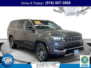 One owner. Grand Wagoneer trim, Baltic Gray Metallic Clearcoat exterior and Global Black interior. 3rd Row Seat, NAV, Sunroof, Heated Leather Seats, Panoramic Roof, 4x4, Quad Seats, Tow Hitch, EMBOSSED METAL INTERIOR ACCENTS , WHEELS: 22 X 9.0 PREMIUM 1 ALUMINUM. ENGINE: 6.4L V8, TRANSMISSION: 8-SPEED AUTOMATIC (8HP7. FLEXIBLE SEATING GROUP. Approx. Original Base Sticker Price: $90,500*.KEY FEATURES INCLUDELeather Seats, Navigation, Panoramic Roof, 4x4, Quad Bucket Seats.OPTION PACKAGESWHEELS: 22 X 9.0 PREMIUM 1 ALUMINUM Tires: 285/45R22XL BSW All Season, EMBOSSED METAL INTERIOR ACCENTS, FLEXIBLE SEATING GROUP 2nd Row Dual Charge-Only USB Ports, 8 Passenger Seating, GVWR: 7,800 lbs, 40/20/40 Power Recline Tip/Slide, TRANSMISSION: 8-SPEED AUTOMATIC (8HP75) (STD), ENGINE: 6.4L V8 (STD). Jeep Grand Wagoneer with Baltic Gray Metallic Clearcoat exterior and Global Black interior features a 8 Cylinder Engine with 471 HP at 6000 RPM*.VISIT US TODAYWe hand select the finest automobiles possible, recondition as required so you do not have to worry about anything shortly down the road. Our Certified vehicles for example all have more than 50% brake life, most have brand new brakes installed front and rear and it does not end there.WESTBURY VIPAmericas #1 VIP Plus Program includes Complimentary Loaner Cars, UnlimitedOil & Filter changes for 1 yr. & then included with every factorymaintenance, Courtesy Shuttle to work, home or any other location, ExpressLube 30 minutes or less w/ no appointment necessary, Complimentary NYSI, 24/7 Rescue & Towing.