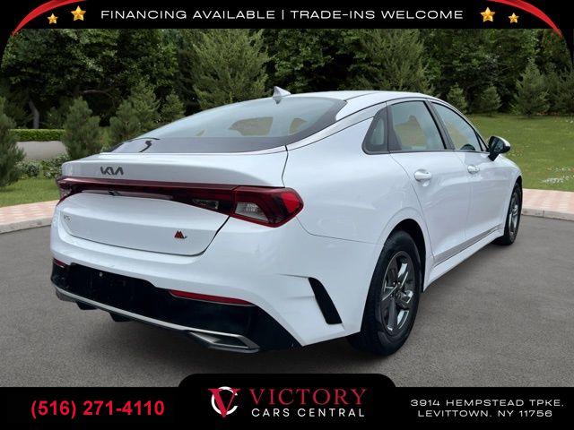 All pricing and details are believed to be accurate, but we do not warrant or guarantee such accuracy. The prices shown above may vary from region to region, as will incentives, and are subject to change. All cars are sold cosmetically As-Is. Vehicle information is based on standard equipment and may vary from vehicle to vehicle. Call or email for complete vehicle specific information. Price Does not include tax, title, license, destination charges, finance charges, or any reconditioning fees. Our special Internet pricing cannot be extended without a printed copy of the online pricing. The in-store price may exceed our special online pricing. Sorry but we cannot extend special pricing without a printed copy of the on-line pricing. To take advantage of our special Internet discounts, please print this page and present it to your salesperson at the BEGINNING of the transaction. Special Internet pricing posted on this ad/coupon/promotion is only available to customers who reference such pricing & present the ad at time of sale otherwise our store standard list price applies. Please be advised this ad is a Special Internet only ad. Prices can be modified and adjusted weekly, daily and sometimes hourly due to inquiries, bidding and website traffic on any Vehicles. All displayed inventory is subject to prior sale and all prices expire at midnight on the date displayed. Every reasonable effort has been made to ensure the accuracy of the information contained on this site, however absolute accuracy cannot be guaranteed. Advertised special excludes state tax, title, license, registration, NY state inspection, NYS tire recycling fee, finance charges, and dealer fees if applicable. Please verify any information in question with the dealership sales manager. This is easily done by calling us at (516) 271-4110 or by visiting us at the dealership. **With approved credit. Glacial White Pearl 2023 Kia K5 LXS FWD 8-Speed Automatic 1.6L I4 DGI Turbocharged DOHC 16V LEV3-ULEV70 180hp