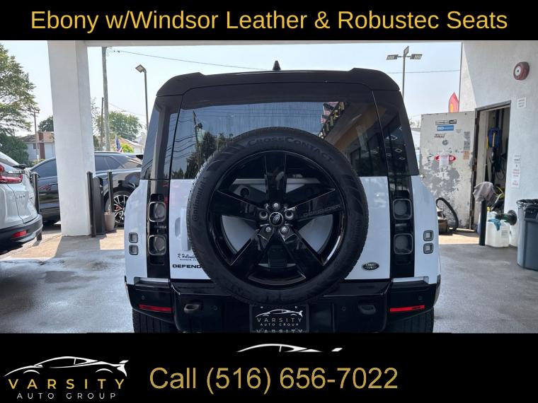 The Price you See, is the Price You Pay!!!, 2023 Land Rover Defender 110, Fuji White, Ebony w/Windsor Leather & Robustec Seats, 5.0L V8, 4WD, 1 Owner, Clean CARFAX, 14-Way Heated & Cooled Electric Memory Seats, 15 Speakers, 3.55 Axle Ratio, 4-Wheel Disc Brakes, ABS brakes, Active Cruise Control, Adaptive suspension, Air Conditioning, Alloy wheels, AM/FM radio: SiriusXM, Apple CarPlay & Android Auto, Auto High-beam Headlights, Auto tilt-away steering wheel, Auto-dimming door mirrors, Auto-dimming Rear-View mirror, Automatic temperature control, Brake assist, Bumpers: body-color, Compass, Delay-off headlights, Driver door bin, Driver vanity mirror, Dual front impact airbags, Dual front side impact airbags, Electronic Stability Control, Exterior Parking Camera Rear, Four wheel independent suspension, Front anti-roll bar, Front Bucket Seats, Front Center Armrest, Front dual zone A/C, Front fog lights, Front reading lights, Fully automatic headlights, Garage door transmitter: HomeLink, Headlight cleaning, Heads-Up Display, Heated door mirrors, Heated front seats, Heated rear seats, Heated steering wheel, Illuminated entry, Leather Shift Knob, Low tire pressure warning, Memory seat, Navigation System, Navigation system: Connected Navigation PIVI Pro, Occupant sensing airbag, Outside temperature display, Overhead airbag, Overhead console, Panic alarm, Passenger door bin, Passenger vanity mirror, Power door mirrors, Power driver seat, Power moonroof, Power passenger seat, Power steering, Power windows, Radio data system, Radio: 700W 15 Speaker Meridian Surround Sound Sys, Rain sensing wipers, Rear air conditioning, Rear anti-roll bar, Rear fog lights, Rear reading lights, Rear seat center armrest, Rear window defroster, Rear window wiper, Remote keyless entry, Security system, Speed control, Speed-sensing steering, Speed-Sensitive Wipers, Split folding rear seat, Steering wheel memory, Steering wheel mounted audio controls, Tachometer, Telescoping steering wheel, Tilt steering wheel, Traction control, Trip computer, Variably intermittent wipers, Ventilated front seats, Weather band radio, Wheels: 22" Gloss Dark Grey Style 5098, Windsor Leather Seat Trim. Fuji White 2023 Land Rover Defender 110 V8 4WD 8-Speed Automatic 5.0L V8
