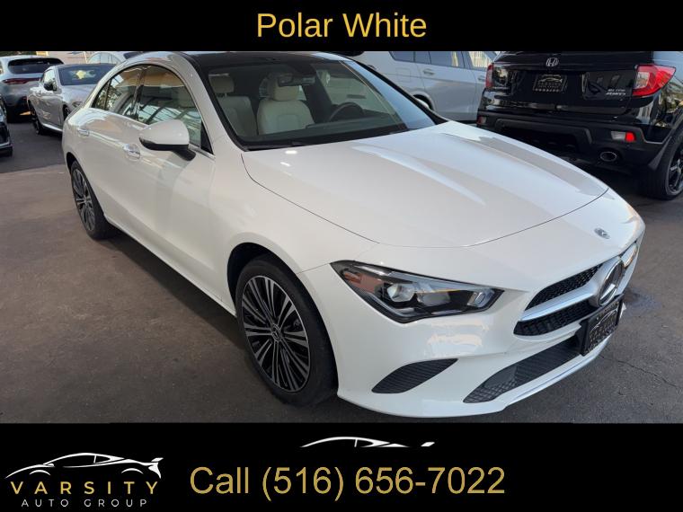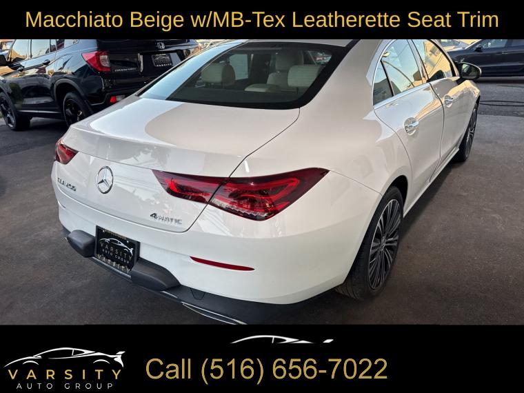 Mercedes-Benz CLA 250 4MATIC, Polar White, Macchiato Beige w/MB-Tex Leatherette Seat Trim, Premium Package, Clean CARFAX, 10.25" Digital Instrument Cluster, 10.25" Media Display w/Touchscreen, 18" Multi-Spoke Alloy Wheels, 4-Wheel Disc Brakes, 8 Speakers, ABS brakes, Air Conditioning, Alloy wheels, AM/FM radio, Apple CarPlay®/Android Auto®, Auto-Dimming Rearview & Driver-Side Mirrors, Automatic temperature control, Brake assist, Bumpers: body-color, Child-Seat-Sensing Airbag, Delay-off headlights, Driver door bin, Driver vanity mirror, Dual front impact airbags, Dual front side impact airbags, Electronic Stability Control, Emergency communication system: eCall Emergency System, Exterior Parking Camera Rear, First Aid Kit, Four wheel independent suspension, Front anti-roll bar, Front Bucket Seats, Front Center Armrest, Front dual zone A/C, Front reading lights, Front Sport Seats, Fully automatic headlights, Garage Door Opener, HANDS-FREE ACCESS, Heated door mirrors, Heated Front Seats, Heated Steering Wheel, Illuminated entry, KEYLESS GO®, Knee airbag, Low tire pressure warning, MB-Tex Leatherette Seat Trim, MB-Tex/DINAMICA Upholstery, Memory seat, Occupant sensing airbag, Outside temperature display, Overhead airbag, Overhead console, Panic alarm, Passenger door bin, Passenger vanity mirror, Power door mirrors, Power driver seat, Power Folding Side Mirrors, Power moonroof, Power passenger seat, Power steering, Power windows, Premium Package, Radio data system, Radio: MBUX Multimedia System, Rain sensing wipers, Rear anti-roll bar, Rear fog lights, Rear reading lights, Rear seat center armrest, Rear window defroster, Remote keyless entry, Security system, SiriusXM Satellite Radio, Speed control, Speed-sensing steering, Split folding rear seat, Steering wheel mounted audio controls, Tachometer, Telescoping steering wheel, Tilt steering wheel, Traction control, Trip computer, Turn signal indicator mirrors, Variably intermittent wipers. Polar White 2023 Mercedes-Benz CLA 250 4MATIC® 4MATIC® 7-Speed Automatic 2.0L I4 Turbocharged Odometer is 8067 miles below market average! 24/33 City/Highway MPG