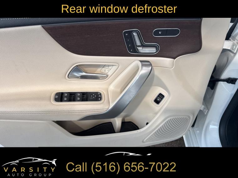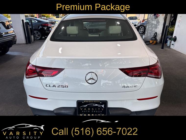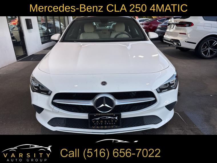 Premium Package, 8 Speakers, AM/FM radio, Radio data system, Radio: MBUX Multimedia System, SiriusXM Satellite Radio, Air Conditioning, Automatic temperature control, Front dual zone A/C, Rear window defroster, Garage Door Opener, Memory seat, Power driver seat, Power steering, Power windows, Remote keyless entry, Steering wheel mounted audio controls, Four wheel independent suspension, Speed-sensing steering, Traction control, 4-Wheel Disc Brakes, ABS brakes, Child-Seat-Sensing Airbag, Dual front impact airbags, Dual front side impact airbags, Emergency communication system: eCall Emergency System, Front anti-roll bar, HANDS-FREE ACCESS, KEYLESS GO®, Knee airbag, Low tire pressure warning, Occupant sensing airbag, Overhead airbag, Rear anti-roll bar, Power moonroof, Brake assist, Electronic Stability Control, Exterior Parking Camera Rear, Delay-off headlights, Fully automatic headlights, Rear fog lights, Panic alarm, Security system, Speed control, Auto-Dimming Rearview & Driver-Side Mirrors, Bumpers: body-color, Heated door mirrors, Power door mirrors, Power Folding Side Mirrors, Turn signal indicator mirrors, 10.25" Digital Instrument Cluster, 10.25" Media Display w/Touchscreen, Apple CarPlay®/Android Auto®, Driver door bin, Driver vanity mirror, First Aid Kit, Front reading lights, Heated Steering Wheel, Illuminated entry, Outside temperature display, Overhead console, Passenger vanity mirror, Rear reading lights, Rear seat center armrest, Tachometer, Telescoping steering wheel, Tilt steering wheel, Trip computer, Front Bucket Seats, Front Center Armrest, Front Sport Seats, Heated Front Seats, MB-Tex Leatherette Seat Trim, MB-Tex/DINAMICA Upholstery, Power passenger seat, Split folding rear seat, Passenger door bin, 18" Multi-Spoke Alloy Wheels, Alloy wheels, Rain sensing wipers, Variably intermittent wipers, Mercedes-Benz CLA 250 4MATIC, Polar White, Macchiato Beige w/MB-Tex Leatherette Seat Trim, Clean CARFAX