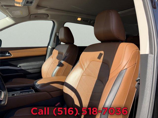 [S10] LED FOG LAMPS, [T01] TOW DELETE PACKAGE -inc: Delete Tow Hitch Receiver & Harness, SUPER BLACK, [M92] CARGO PACKAGE -inc: dividers and console net Cargo Area Protector Cargo Net First Aid Kit, [B93] CROSS BARS, [L92] BENCH SEAT CARPETED FLOOR MATS (SET OF 4), CHESTNUT SEMI-ANILINE LEATHER SEATING SURFACES, Front Wheel Drive, Power Steering, ABS, 4-Wheel Disc Brakes, Brake Assist, Brake Actuated Limited Slip Differential, Aluminum Wheels, Tires - Front Performance, Tires - Rear Performance, Temporary Spare Tire, Sun/Moonroof, Generic Sun/Moonroof, Panoramic Roof, Heated Mirrors, Power Mirror(s), Integrated Turn Signal Mirrors, Power Folding Mirrors, Rear Defrost, Privacy Glass, Intermittent Wipers, Variable Speed Intermittent Wipers, Rain Sensing Wipers, Rear Spoiler, Remote Trunk Release, Power Liftgate, Power Door Locks, Daytime Running Lights, Automatic Headlights, LED Headlights, Automatic Highbeams, AM/FM Stereo, Premium Sound System, Satellite Radio, MP3 Capability, Bluetooth Connection, Smart Device Integration, Requires Subscription, MP3 Capability, Steering Wheel Audio Controls, Auxiliary Audio Input, Premium Sound System, Bluetooth Connection, Power Driver Seat, Power Passenger Seat, Bucket Seats, Heated Front Seat(s), Driver Adjustable Lumbar, Passenger Adjustable Lumbar, Seat Memory, Cooled Front Seat(s), Pass-Through Rear Seat, Heated Rear Seat(s), Rear Bench Seat, Adjustable Steering Wheel, Trip Computer, Power Windows, WiFi Hotspot, 3rd Row Seat, Leather Steering Wheel, Heated Steering Wheel, Keyless Entry, Power Door Locks, Keyless Start, Keyless Entry, Power Door Locks, Hands-Free Liftgate, Universal Garage Door Opener, Cruise Control, Adaptive Cruise Control, Climate Control, Multi-Zone A/C, A/C, A/C, Rear A/C, Leather Seats, Driver Vanity Mirror, Passenger Vanity Mirror, Driver Illuminated Vanity Mirror, Passenger Illuminated Visor Mirror, Auto-Dimming Rearview Mirror, Smart Device Integration, Remote Engine Start, Smart Device Integration, Requires Subscription, Remote Engine Start, Keyless Start, Mirror Memory, Seat Memory, Navigation System, Power Windows, Power Door Locks, Trip Computer, Heads-Up Display, Mirror Memory, Seat Memory, Security System, Immobilizer, Cruise Control Steering Assist, Traction Control, Stability Control, Traction Control, Front Side Air Bag, Cross-Traffic Alert, Rear Collision Mitigation, Front Collision Mitigation, Driver Monitoring, Telematics, Requires Subscription, Blind Spot Monitor, Lane Departure Warning, Lane Keeping Assist, Lane Departure Warning, Rear Parking Aid, Aerial View Display System, Tire Pressure Monitor, Driver Air Bag, Passenger Air Bag, Front Head Air Bag, Rear Head Air Bag, Passenger Air Bag Sensor, Front Side Air Bag, Rear Side Air Bag, Knee Air Bag, Child Safety Locks, Driver Restriction Features, Back-Up Camera