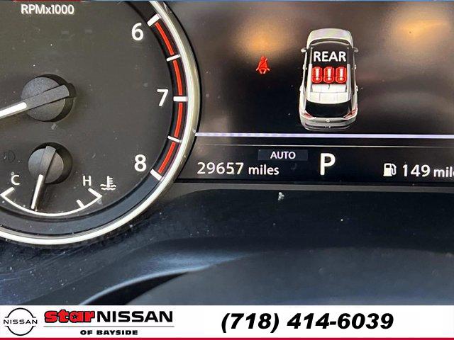 • CHARCOAL LEATHER-APPOINTED SEAT TRIM, [L93] FLOOR MATS W/2-PIECE CARGO AREA PROTECTOR -inc: seatback protector First Aid Kit, BOULDER GRAY PEARL, [N94] FRAMELESS REARVIEW MIRROR W/UNIVERSAL REMOTE, [P02] SL PREMIUM PACKAGE -inc: Rear Door Sunshades Traffic Sign Recognition Motion Activated Power Liftgate Tri-Zone HVAC ProPILOT Assist w/Navi-link Front Side & Rear Sonar 12 sensors Radio: AM/FM NissanConnect w/Navigation 9 color display w/multi-touch control Nissan door to door navigation w/3D building graphics and satellite imagery featuring online POI search and online premium traffic information s Alexa built in SiriusXM Traffic (subscription required) SiriusXM Travel Link (subscription required) NissanConnect featuring Apple CarPlay and Bluetooth Bose Premium Audio System 10-speakers including dual driver subwoofer, [B93] CHROME REAR BUMPER PROTECTOR, [N92] ILLUMINATED KICK PLATES, [B92] BLACK SPLASH GUARDS (SET OF 4), Turbocharged, All Wheel Drive, Power Steering, ABS, 4-Wheel Disc Brakes, Brake Assist, Brake Actuated Limited Slip Differential, Aluminum Wheels, Tires - Front Performance, Tires - Rear Performance, Temporary Spare Tire, Sun/Moonroof, Generic Sun/Moonroof, Panoramic Roof, Heated Mirrors, Power Mirror(s), Integrated Turn Signal Mirrors, Rear Defrost, Privacy Glass, Intermittent Wipers, Variable Speed Intermittent Wipers, Rear Spoiler, Remote Trunk Release, Power Liftgate, Power Door Locks, Daytime Running Lights, Automatic Headlights, LED Headlights, Automatic Highbeams, AM/FM Stereo, Satellite Radio, Bluetooth Connection, WiFi Hotspot, Smart Device Integration, Requires Subscription, MP3 Capability, Steering Wheel Audio Controls, Auxiliary Audio Input, Bluetooth Connection, Power Driver Seat, Power Passenger Seat, Bucket Seats, Heated Front Seat(s), Driver Adjustable Lumbar, Seat Memory, Pass-Through Rear Seat, Rear Bench Seat, Adjustable Steering Wheel, Trip Computer, Power Windows, WiFi Hotspot, Leather Steering Wheel, Heated Steering Wheel, Keyless Entry, Power Door Locks, Keyless Entry, Power Door Locks, Keyless Start, Cruise Control, Adaptive Cruise Control, Climate Control, Multi-Zone A/C, A/C, Leather Seats, Driver Vanity Mirror, Passenger Vanity Mirror, Driver Illuminated Vanity Mirror, Passenger Illuminated Visor Mirror, Auto-Dimming Rearview Mirror, Smart Device Integration, Remote Engine Start, Keyless Start, Mirror Memory, Seat Memory, Power Windows, Power Door Locks, Trip Computer, Mirror Memory, Seat Memory, Immobilizer, Security System, Cruise Control Steering Assist, Traction Control, Stability Control, Traction Control, Front Side Air Bag, Rear Parking Aid, Cross-Traffic Alert, Rear Collision Mitigation, Front Collision Mitigation, Driver Monitoring, Telematics, Requires Subscription, Blind Spot Monitor, Lane Departure Warning, Lane Keeping Assist, Lane Departure Warning, Aerial View Display System, Tire Pressure Monitor, Driver Air Bag, Passenger Air Bag, Front Head Air Bag, Rear Head Air Bag, Passenger Air Bag Sensor, Front Side Air Bag, Rear Side Air Bag, Knee Air Bag, Child Safety Locks, Back-Up Camera