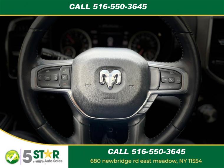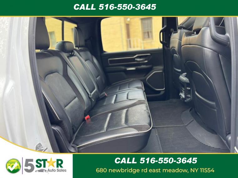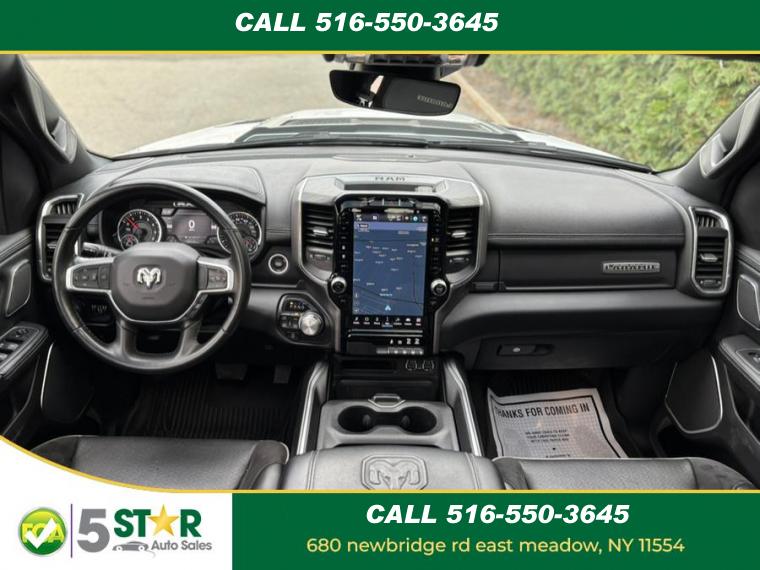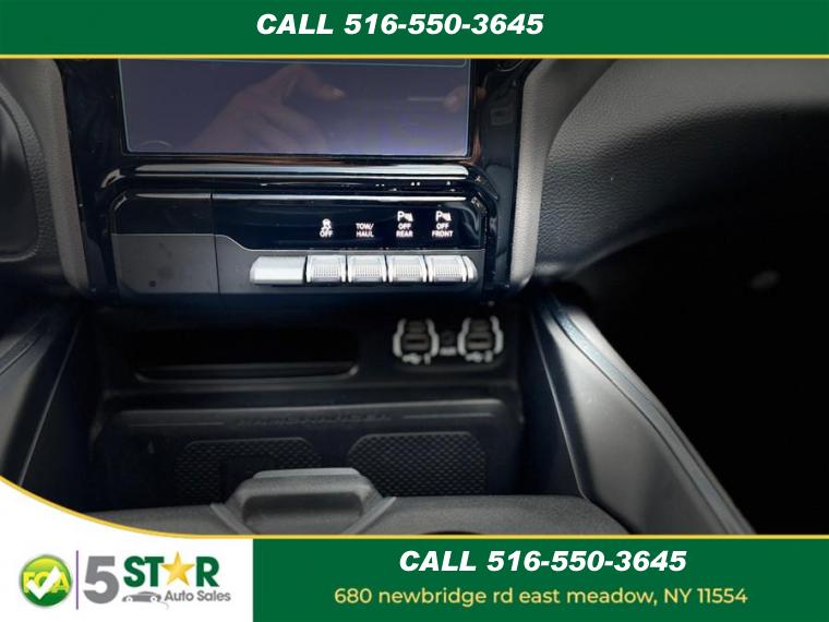 ABS, 4-Wheel Disc Brakes, 8 Cylinder Engine, 8-Speed A/T, A/C, A/T, Adjustable Pedals, Adjustable Steering Wheel, Security System, Aluminum Wheels, AM/FM Stereo, Transmission w/Dual Shift Mode, Automatic Headlights, Auxiliary Audio Input, Back-Up Camera, Brake Assist, Child Safety Locks, Climate Control, Cooled Front Seat(s), Cruise Control, Daytime Running Lights, Driver Air Bag, Driver Illuminated Vanity Mirror, Driver Adjustable Lumbar, Driver Vanity Mirror, Multi-Zone A/C, Auto-Dimming Rearview Mirror, Stability Control, Fog Lamps, Four Wheel Drive, Front Collision Mitigation, Floor Mats, Conventional Spare Tire, Gasoline/Mild Electric Hybrid, HD Radio, Heated Front Seat(s), Heated Mirrors, Heated Steering Wheel, Integrated Turn Signal Mirrors, Intermittent Wipers, Keyless Entry, Keyless Start, Leather Steering Wheel, Mirror Memory, MP3 Player, Navigation System, Pass-Through Rear Seat, Passenger Air Bag, Passenger Air Bag Sensor, Passenger Illuminated Visor Mirror, Passenger Adjustable Lumbar, Passenger Vanity Mirror, Power Door Locks, Power Mirror(s), Power Driver Seat, Power Folding Mirrors, Power Passenger Seat, Power Steering, Power Windows, Premium Sound System, Privacy Glass, Rear Bench Seat, Rear Head Air Bag, Remote Engine Start, Requires Subscription, Satellite Radio, Seat Memory, Front Side Air Bag, Front Head Air Bag, Smart Device Integration, Steering Wheel Audio Controls, Tire Pressure Monitor, Traction Control, Tow Hitch, Trip Computer, Universal Garage Door Opener, Variable Speed Intermittent Wipers, Immobilizer, WiFi Hotspot, Bluetooth Connection, Woodgrain Interior Trim, Auto Dim Exterior Driver Mirror, Auto On/Off Aero-Composite Halogen Daytime Running Lights Preference Setting Headlamps w/Delay-Off, Black Side Windows Trim, Body-Colored Door Handles, Cargo Lamp w/High Mount Stop Light, Chrome Exterior Mirrors, Chrome Front Bumper w/Chrome Rub Strip/Fascia Accent, Chrome Grille, Chrome Rear Step Bumper, Clearcoat Paint, Convex Wide-Angle Exterior Mirror Insert, Deep Tinted Glass, Exterior Mirrors Courtesy Lamps, Exterior Mirrors w/Heating Element, Exterior Mirrors w/Supplemental Signals, Fixed Rear Window, For More Info, Call 800-643-2112, Front Fog Lamps, Full-Size Spare Tire Stored Underbody w/Crankdown, Galvanized Steel/Aluminum Panels, Laminated Glass, LED Brakelights, Power w/Tilt Down Side Mirrors, Power-Folding Mirrors, RAM Grille Badge - Chrome, Regular Box Style, Steel Spare Wheel, Tailgate Rear Cargo Access, Tailgate/Rear Door Lock Included w/Power Door Locks, Tires: 275/65R18 BSW All Season LRR, USB Host Flip, Variable Intermittent Wipers, Wheels: 18" x 8" Aluminum Base Painted, #1 Seat Foam Cushion, 1 12V DC Power Outlet, 1 12V DC Power Outlet and 2 120V AC Power Outlets, 3 Rear Seat Head Restraints, 4 Way Front Headrests, 4G LTE Wi-Fi Hot Spot, Air Filtration, Analog Appearance, Apple CarPlay, Compass, Connected Travel & Traffic Services, Connectivity - US/Canada, Cruise Control w/Steering Wheel Controls, Day-Night Auto-Dimming Rearview Mirror, Delayed Accessory Power, Disassociated Touchscreen Display, Driver And Passenger Visor Vanity Mirrors w/Driver And Passenger Illumination, Driver Information Center, Driver Seat, Driver Seat Memory, Dual Zone Front Automatic Air Conditioning w/Front Infrared, Exterior Mirrors w/Memory, Fade-To-Off Interior Lighting, FOB Controls -inc: Remote Start, For Details, Visit DriveUconnect.com, Front Center Armrest w/Storage and Rear Center Armrest, Front Facing Vinyl Rear Seat, Front Map Lights, Front Seat Back Map Pockets, Full Carpet Floor Covering -inc: Carpet Front And Rear Floor Mats, Full Cloth Headliner, Garage Door Transmitter, Gauges -inc: Speedometer, Odometer, Voltmeter, Oil Pressure, Engine Coolant Temp, Tachometer, Oil Temperature, Transmission Fluid Temp, Engine Hour Meter, Trip Odometer and Trip Computer, Global Telematics Box Module (TBM), Google Android Auto, GPS Antenna Input, GPS Navigation, Heated Front Seats, Heated Steering Wheel, HVAC -inc: Underseat Ducts and Console Ducts, Illuminated Front Cupholder, Illuminated Locking Glove Box, Instrument Panel Bin, Dashboard Storage, Driver / Passenger And Rear Door Bins and 1st Row Underseat Storage, Integrated Voice Command w/Bluetooth, Interior Trim -inc: Deluxe Sound Insulation, Simulated Wood/Metal-Look Instrument Panel Insert, Simulated Wood/Metal-Look Door Panel Insert, Chrome/Metal-Look Interior Accents and Metal-Look Overhead Console Insert, Leather Steering Wheel, Leather Trim 40/20/40 Bench Seat, Manual Tilt/Telescoping Steering Column, Memory Settings -inc: Audio and Pedals, Metal-Look Gear Shifter Material, Mini Overhead Console, 1 12V DC Power Outlet and 2 120V AC Power Outlets, Outside Temp Gauge, Passenger Seat, Perimeter Alarm, Pickup Cargo Box Lights, Power 1st Row Windows w/Driver And Passenger 1-Touch Up/Down, Power 2-Way Driver Lumbar Adjust, Power 2-Way Passenger Lumbar Adjust, Power 8-Way Driver & Passenger Seats, Power Adjustable Pedals, Power Door Locks w/Autolock Feature, Power Rear Windows, Proximity Key For Doors And Push Button Start, Rear 60/40 Folding Seat, Rear Cupholder, Redundant Digital Speedometer, Remote Keyless Entry w/Integrated Key Transmitter, Illuminated Entry and Panic Button, Seats w/Leatherette Back Material, Sentry Key Immobilizer, Smart Device Remote Engine Start, Trip Computer, Valet Function, Ventilated Front Seats, Vinyl Door Trim Insert, Voice Recorder, 1710# Maximum Payload, 26 Gal. Fuel Tank, 3.21 Rear Axle Ratio, 48V Belt Starter Generator, 50 State Emissions, 730CCA Maintenance-Free Battery, Auto Locking Hubs, Class III Towing Equipment -inc: Hitch and Trailer Sway Control, Electric Power-Assist Steering, Electronic Transfer Case, Engine Auto Stop-Start Feature, Engine Oil Cooler, Engine: 3.6L V6 24V VVT eTorque UPG I, Front And Rear Anti-Roll Bars, GVWR: 6, 900 lbs, HD Shock Absorbers, Lithium Ion Traction Battery 0.43 kWh Capacity, Part-Time Four-Wheel Drive, Regenerative 4-Wheel Disc Brakes w/4-Wheel