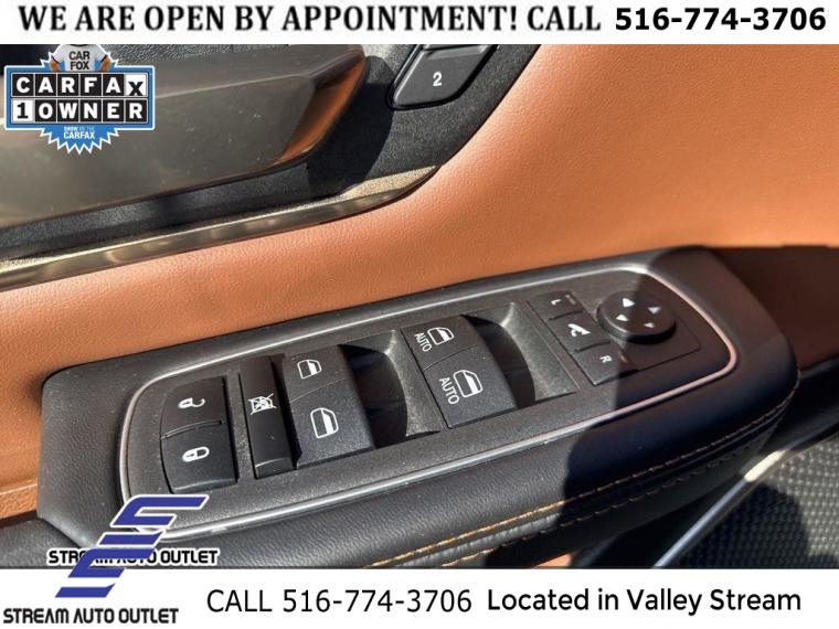 Navigation System, 10 Speakers, AM/FM radio: SiriusXM with 360L, Audio memory, Radio data system, Radio: Uconnect 5 Nav w/12.0" Display, Air Conditioning, Automatic temperature control, Front dual zone A/C, Rear window defroster, Driver Seat Memory, Exterior Mirrors w/Memory, Heated Second Row Seats, Memory seat, Pedal memory, Power driver seat, Power steering, Power windows, Remote keyless entry, Steering wheel mounted audio controls, Traction control, 4-Wheel Disc Brakes, ABS brakes, Dual front impact airbags, Dual front side impact airbags, Front anti-roll bar, Front wheel independent suspension, Low tire pressure warning, Occupant sensing airbag, Overhead airbag, Rear anti-roll bar, Brake assist, Electronic Stability Control, ParkView Rear Back-Up Camera, Auto High-beam Headlights, Delay-off headlights, Front fog lights, Fully automatic headlights, Panic alarm, Security system, Speed control, 48V Belt Starter Generator, Auto-dimming door mirrors, Bumpers: chrome, Chrome Exterior Mirrors, Exterior Mirrors Courtesy Lamps, Exterior Mirrors w/Heating Element, Exterior Mirrors w/Supplemental Signals, Heated door mirrors, Power door mirrors, Power-Folding Mirrors, Rear step bumper, Turn signal indicator mirrors, #1 Seat Foam Cushion, Adjustable pedals, Apple CarPlay/Android Auto, Auto-dimming Rear-View mirror, Compass, Driver door bin, Driver vanity mirror, Front reading lights, Full Length Premium Floor Console, Garage door transmitter, Genuine wood console insert, Genuine wood dashboard insert, Genuine wood door panel insert, Heated Steering Wheel, Heated steering wheel, Illuminated entry, Leather steering wheel, Outside temperature display, Overhead console, Passenger vanity mirror, Rear seat center armrest, Tachometer, Telescoping steering wheel, Tilt steering wheel, Trip computer, Voltmeter, 3 Rear Seat Head Restraints, 4 Way Front Headrests, Bucket Seats, Front Bucket Seats, Heated Front Seats, Heated front seats, Heated rear seats, Leather Trimmed Bucket Seats, Power 4-Way Driver Lumbar Adjust, Power 4-Way Passenger Lumbar Adjust, Power 8-Way Driver & Passenger Seats, Power passenger seat, Rear 60/40 Folding Split Recline Seat, Split folding rear seat, Ventilated Front Seats, Ventilated front seats, Ventilated Rear Seats, Ventilated rear seats, Front Center Armrest w/Storage, Front Seat Back Map Pockets, Passenger door bin, Alloy wheels, Wheels: 20" x 9" Aluminum Painted/Polished, Rain sensing wipers, Variably intermittent wipers, 3.21 Rear Axle Ratio