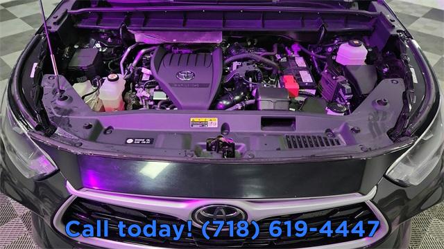6 Speakers, AM/FM radio: SiriusXM, Radio: 8" Toyota Audio Multimedia, Air Conditioning, Automatic temperature control, Front dual zone A/C, Rear air conditioning, Rear window defroster, Power driver seat, Power steering, Power windows, Remote keyless entry, Steering wheel mounted audio controls, Four wheel independent suspension, Speed-sensing steering, Traction control, 4-Wheel Disc Brakes, ABS brakes, Dual front impact airbags, Dual front side impact airbags, Emergency communication system: Safety Connect (up to 10-year trial subscription), Front anti-roll bar, Knee airbag, Low tire pressure warning, Occupant sensing airbag, Overhead airbag, Rear anti-roll bar, Power moonroof, Power Liftgate, Brake assist, Electronic Stability Control, Exterior Parking Camera Rear, Auto High-beam Headlights, Delay-off headlights, Front fog lights, Fully automatic headlights, Panic alarm, Security system, Speed control, Bumpers: body-color, Heated door mirrors, Power door mirrors, Roof rack: rails only, Spoiler, Turn signal indicator mirrors, Apple CarPlay/Android Auto, Auto-dimming Rear-View mirror, Driver door bin, Driver vanity mirror, Front reading lights, Garage door transmitter: HomeLink, Illuminated entry, Leather Shift Knob, Leather steering wheel, Outside temperature display, Overhead console, Passenger vanity mirror, Rear reading lights, Tachometer, Telescoping steering wheel, Tilt steering wheel, Trip computer, 3rd row seats: split-bench, Front Bucket Seats, Front Center Armrest, Heated Front Bucket Seats, Heated front seats, Power passenger seat, Reclining 3rd row seat, SofTex Seat Trim, Split folding rear seat, Passenger door bin, Alloy wheels, Wheels: 18" Machined-Finish Alloy, Rear window wiper, Variably intermittent wipers, 3.329 Axle Ratio