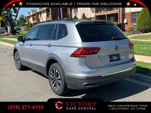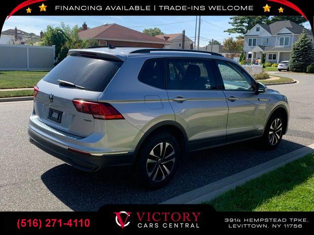 All pricing and details are believed to be accurate, but we do not warrant or guarantee such accuracy. The prices shown above may vary from region to region, as will incentives, and are subject to change. All cars are sold cosmetically As-Is. Vehicle information is based on standard equipment and may vary from vehicle to vehicle. Call or email for complete vehicle specific information. Price Does not include tax, title, license, destination charges, finance charges, or any reconditioning fees. Our special Internet pricing cannot be extended without a printed copy of the online pricing. The in-store price may exceed our special online pricing. Sorry but we cannot extend special pricing without a printed copy of the on-line pricing. To take advantage of our special Internet discounts, please print this page and present it to your salesperson at the BEGINNING of the transaction. Special Internet pricing posted on this ad/coupon/promotion is only available to customers who reference such pricing & present the ad at time of sale otherwise our store standard list price applies. Please be advised this ad is a Special Internet only ad. Prices can be modified and adjusted weekly, daily and sometimes hourly due to inquiries, bidding and website traffic on any Vehicles. All displayed inventory is subject to prior sale and all prices expire at midnight on the date displayed. Every reasonable effort has been made to ensure the accuracy of the information contained on this site, however absolute accuracy cannot be guaranteed. Advertised special excludes state tax, title, license, registration, NY state inspection, NYS tire recycling fee, finance charges, and dealer fees if applicable. Please verify any information in question with the dealership sales manager. This is easily done by calling us at (516) 271-4110 or by visiting us at the dealership. **With approved credit. Silver 2023 Volkswagen Tiguan 2.0T S AWD 8-Speed Automatic with Tiptronic 2.0L TSI DOHC AWD.