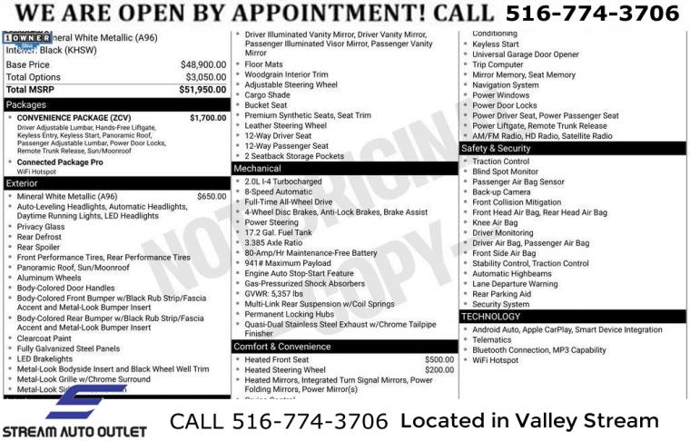 * NYS INSPECTION INCLUDED *, * FULL INTERIOR / EXTERIOR DETAIL *, * BACK UP CAMERA *, * BLUETOOTH *, * LIMITED NYS LEMON LAW WARRANTY INCLUDED *, *FRESH OIL CHANGE *, * 150 MULTI POINT INSPECTION *, 8-Speed Automatic Sport, Connected Package Pro, Convenience Package, Lumbar Support, Navigation, Navigation System, Panoramic Moonroof.