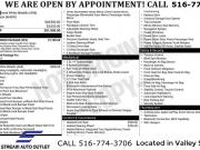 BEGIN THE SIMPLE PROCESS. PERSONALIZE THE PAYMENTS THAT FIT YOUR BUDGET, ADD YOUR TRADE-IN INFORMATION, APPLY FOR YOUR AUTO LOAN, SCHEDULE A PICKUP OR DELIVERY DATE. (HOME DELIVERY AVAILABLE*). EVERY VEHICLE HAS BEEN PRICED BELOW COST IN ORDER TO TURN INVENTORY QUICKLY AND PASS ON THE SAVINGS TO YOU! EACH VEHICLE COMES WITH A FREE LIMITED POWERTRAIN WARRANTY AND FREE CARFAX REPORT! WITH THESE SAVINGS THESE VEHICLES WONT LAST. CALL TO GET YOUR GREAT DEAL TODAY! (516) 774-3706.