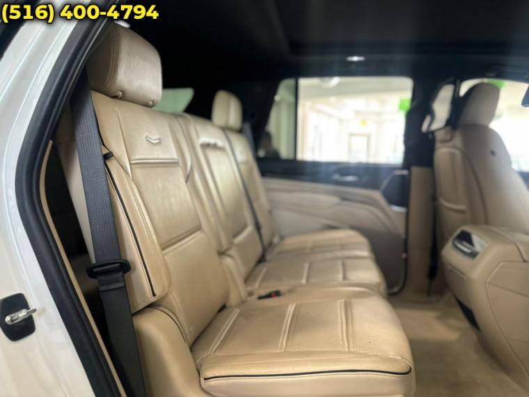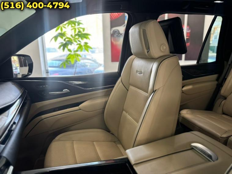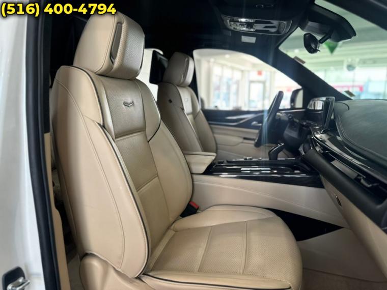 10-Speed A/T, ABS, 4-Wheel Disc Brakes, 8 Cylinder Engine, A/C, A/T, Adaptive Cruise Control, 3rd Row Seat, Adjustable Steering Wheel, Aerial View Display System, Security System, Aluminum Wheels, AM/FM Stereo, Transmission w/Dual Shift Mode, Automatic Headlights, Automatic Highbeams, Automatic Parking, Auxiliary Audio Input, Back-Up Camera, Blind Spot Monitor, Brake Assist, Bucket Seats, Child Safety Locks, Climate Control, Cooled Front Seat(s), Cross-Traffic Alert, Cruise Control, Cruise Control Steering Assist, Driver Air Bag, Driver Adjustable Lumbar, Driver Monitoring, Driver Restriction Features, Multi-Zone A/C, Stability Control, Four Wheel Drive, Front Collision Mitigation, Front Collision Warning, Floor Mats, Gasoline Fuel, Hands-Free Liftgate, HD Radio, Heads-Up Display, Heated Front Seat(s), Heated Mirrors, Heated Rear Seat(s), Heated Steering Wheel, Integrated Turn Signal Mirrors, Intermittent Wipers, Keyless Entry, Keyless Start, Lane Departure Warning, Lane Keeping Assist, Leather Seats, Locking/Limited Slip Differential, Luggage Rack, Mirror Memory, MP3 Capability, Navigation System, Telematics, Panoramic Roof, Pass-Through Rear Seat, Passenger Air Bag, Passenger Air Bag Sensor, Passenger Adjustable Lumbar, Power Door Locks, Power Mirror(s), Power Driver Seat, Power Folding Mirrors, Power Liftgate, Power Passenger Seat, Power Steering, Power Windows, Premium Sound System, Privacy Glass, Rain Sensing Wipers, Rear A/C, Rear Collision Mitigation, Rear Defrost, Rear Head Air Bag, Rear Parking Aid, Remote Engine Start, Remote Trunk Release, Requires Subscription, Running Boards/Side Steps, Satellite Radio, Seat Memory, Front Side Air Bag, Front Head Air Bag, Smart Device Integration, Steering Wheel Audio Controls, Generic Sun/Moonroof, Tire Pressure Monitor, Tires - Front All-Season, Tires - Rear All-Season, Traction Control, Tow Hitch, Transmission Overdrive Switch, Universal Garage Door Opener, Variable Speed Intermittent Wipers, Immobilizer, WiFi Hotspot, Bluetooth Connection, Active Aero Shutters, front (Deleted when (LM2) 3.0L Turbo Diesel engine is ordered.), Assist steps, running board (Upgradeable to (B3L) power-retractable assist steps.), Door handles, Galvano accents, Door handles, illuminating, Glass, acoustic, laminated windshield, Glass, deep-tinted, Hands-Free Liftgate open and close, programmable memory height, with Cadillac branded projection light, Headlamp control, automatic leveling system, Headlamps, automatic on/off, Headlamps, LED, IntelliBeam, automatic high beam on/off, Luggage rack, roof-mounted, Chrome, Mirrors, outside heated power-adjustable power-folding, body-color, driver-side auto-dimming, integrated turn signal indicators and puddle lighting, Moldings, Galvano bodyside, Rear Camera Mirror Washer, Spare tire lock, hoist shaft, Sunroof, power, panoramic with tilt, slide, express-open/close and sun shade control, Tail lamps, LED illumination, Tire, spare 265/70R17SL all-season, blackwall, Tires, 275/50R22SL all-season, blackwall, Wheels, 22" (55.9 cm) 14-Spoke alloy with Polished finish, Windshield, solar absorbing, Wiper, rear intermittent, Wipers, front intermittent, Rainsense, Adaptive Cruise Control, Adaptive Remote Start, Air conditioning, rear, Air filter, pollutant, odor and fine dust, Ambient lighting, interior, selectable, Augmented Reality live image of what is in front of the vehicle displayed on the 14.2" diagonal Cluster Display. When a navigational route is active, the system will overlay directional information on the live image being displayed, Climate control, tri-zone automatic with individual climate settings for driver, right-front passenger and rear passengers (includes rear air vents), Console, floor with covered storage, large and small storage bins, dual cup holders, electronic climate controls and second row heated seat controls. Also includes auxiliary power outlet, USB A/C ports and 110-volt outlet, Console, overhead, Defogger, rear-window, Door lock and latch shields, Door locks, power programmable with lockout protection and delayed locking, Floor covering, color-keyed carpeting, Floor mats, color-keyed carpeted first and second row, removable (Deleted when (VYW) Premium carpeted floor mats, LPO is ordered.), Head-Up Display, full-color, reconfigurable (includes the following views: Speed, Audio/Phone, Navigation and Performance), Keyless Open includes extended range Remote Keyless Entry, Memory settings includes two "presets" for driver seat adjuster, outside mirrors and power tilt/telescoping steering column, Power outlet, 110-volt, Power outlet, front auxiliary, 12-volt, located in front console (Standard with (D07) Floor console with covered storage only.), Rear Camera Mirror, Seat adjuster, driver 4-way power lumbar, Seat adjuster, driver 8-way power, Seat adjuster, front passenger 4-way power lumbar, Seat adjuster, front passenger 8-way power, Seat trim, Leather, Seats, front bucket (Includes 12-way driver and front passenger adjustments.), Seats, heated and ventilated driver and front passenger, Seats, heated driver and front passenger, Seats, heated second row outboard seats, Seats, second row bucket, power release (May substitute (ATT) second row 60/40 split-folding bench seats.), Seats, third row 60/40 split-bench, power-folding, Sensor, glass breakage, Sensor, vehicle inclination, Sensor, vehicle interior movement, Steering column lock, electrical, Steering column, power tilt and telescoping, Steering wheel controls, audio, phone, cruise control Conversation Enhancement, gap distance and heated steering wheel, Steering wheel, heated, automatic, Steering wheel, wrapped with mounted audio and cruise controls, Super Cruise a hands-free driver assistance system for use on compatible roads (Always pay attention while driving and when using Super Cruise. Do not use a hand-held device. Visit cadillac.com/supercruise for compatible roads and full details.), Theft-deterrent alarm system, content theft alarm, self-powe