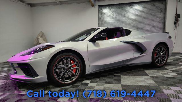 Preferred Equipment Group 3LT, Wheels: 19" x 8.5" Fr/20" x 11" Rr Bright Silver, Wheels: 19" x 8.5" Fr/20" x 11" Rr Midnight Gray, Carbon Flash Wheel Center Caps (LPO), Black Wheel Locks (LPO), Black Lug Nuts (LPO), GT2 Bucket Seats, Competition Sport Bucket Seats, Napa Lthr Seating Surfaces w/Perforated Inserts, Adrenaline Red Custom Leather Stitch, Radio: Chevrolet Infotainment 3 Premium System, Custom Interior Trim & Seat Combination, Performance Data & Video Recorder, Stealth Interior Trim Package, Carbon Fiber Interior Trim, Shadow Gray Exterior Accents (DISC), Front Lift Adjustable Height w/Memory, Front License Plate Bracket, Gray C8.R Premium Indoor Car Cover (LPO), Rear Corvette Script Painted Torch Red (LPO), Black Composite Rocker Extensions (LPO), Carbon Flash Metallic Painted Outside Mirrors, Battery Protection Package, Bright Red-Painted Calipers, Performance Exhaust w/Stainless-Steel Tips, Z51 Performance Package, 8-Way Power Driver Seat Adjuster, 8-Way Power Passenger Seat Adjuster, Driver Power Bolster Seat Adjuster, Passenger Power Bolster Seat Adjuster, Power Driver Lumbar Control Seat Adjuster, 2 Cargo Nets, Memory Driver & Passenger Convenience Package, Power Passenger Lumbar Control Seat Adjuster, Body-Color Removable Roof Panel, Carbon Flash Metallic-Painted Outside Mirrors, Power-Adjustable Outside Heated Mirrors, Z51 Performance Suspension, Electronic Limited-Slip Differential, Performance Rear Axle Ratio, Custom Leather Wrapped Interior Package, Sueded Microfiber-Wrapped Upper Interior Trim Pkg, Z51 Performance Brakes, Wireless Charging for Devices, Heated Steering Wheel, Heated & Vented Driver & Passenger Seats, Rear Z51 Spoiler, Automatic Leveling System Headlamp Control, Rear Cross Traffic Alert, Side Blind Zone Alert, Universal Home Remote, Bose Performance Series Sound System w/14 Speakers, Electrical Theft Deterrent System, Vehicle Inclination Theft Deterrent Sensor, Vehicle Interior Movement Theft Deterrent Sensor, Head-Up Display, HD Front & Rear Vision Cameras, Heavy-Duty Cooling System, 4-Wheel Disc Brakes, Premium audio system: Chevrolet Infotainment 3 Premium, Emergency communication system: OnStar and Chevrolet connected services capable, Auto High-beam Headlights, Exterior Parking Camera Rear, AM/FM radio: SiriusXM, Compass, 14 Speakers, Heads-Up Display, Auto-dimming Rear-View mirror, Front beverage holders, Ventilated front seats, Variably intermittent wipers, Turn signal indicator mirrors, Trip computer, Traction control, Tilt steering wheel, Telescoping steering wheel, Steering wheel mounted audio controls, Steering wheel memory, Sport steering wheel, Speed-sensing steering, Speed control, Security system, Remote keyless entry, Rear window defroster, Rear anti-roll bar, Radio data system, Power windows, Power steering, Power passenger seat, Power driver seat, Power door mirrors, Passenger vanity mirror, Passenger door bin, Panic alarm, Overhead console, Outside temperature display, Occupant sensing airbag, Memory seat, Low tire pressure warning, Leather steering wheel, Illuminated entry, Heated steering wheel, Heated front seats, Heated door mirrors, Garage door transmitter, Fully automatic headlights, Front reading lights, Front dual zone A/C, Front anti-roll bar, Four wheel independent suspension, Dual front side impact airbags, Dual front impact airbags, Driver vanity mirror, Driver door bin, Delay-off headlights, Bumpers: body-color, Brake assist, Automatic temperature control, Auto-dimming door mirrors, Alloy wheels, ABS brakes, Voltmeter, Tachometer, Navigation System, Leather Shift Knob, Front Center Armrest, Front Bucket Seats, Electronic Stability Control, Air Conditioning