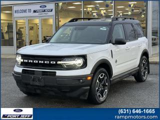 Recent Arrival! CARFAX One-Owner. 2024 Ford Bronco Sport Outer Banks Auto High-beam Headlights, Automatic temperature control, Equipment Group 300A, Evasive Steering Assist, Ford Co-Pilot360 Assist+, Front dual zone A/C, Front fog lights, Fully automatic headlights, HD Radio, Intelligent Adaptive Cruise Control w/Stop & Go, Power Moonroof, Rear Parking Sensors, Remote keyless entry, Steering wheel mounted audio controls, SYNC 3 Communications & Entertainment System, Tech Package, Universal Garage Door Opener (UGDO), Voice-Activated Touchscreen Navigation System, Wireless Charging Pad.