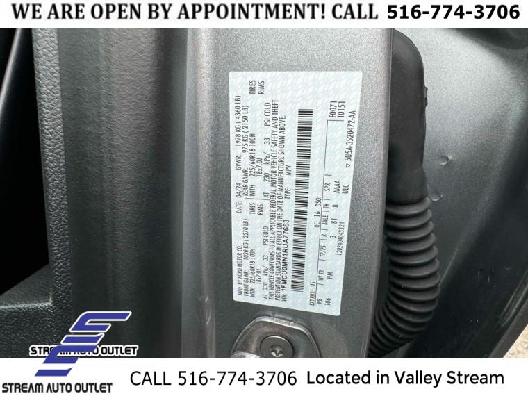 Equipment Group 300A, 6 Speakers, AM/FM radio: SiriusXM, AM/FM Stereo, Radio data system, SYNC 4, Air Conditioning, Automatic temperature control, Front dual zone A/C, Rear window defroster, Power driver seat, Power steering, Power windows, Remote keyless entry, Steering wheel mounted audio controls, Four wheel independent suspension, Speed-sensing steering, Traction control, 4-Wheel Disc Brakes, ABS brakes, Dual front impact airbags, Dual front side impact airbags, Emergency communication system: SYNC 4 911 Assist, FordPass Connect, Front anti-roll bar, Knee airbag, Low tire pressure warning, Occupant sensing airbag, Overhead airbag, Rear anti-roll bar, Power Liftgate, Brake assist, Electronic Stability Control, Exterior Parking Camera Rear, Auto High-beam Headlights, Delay-off headlights, Fully automatic headlights, Panic alarm, Speed control, Bumpers: body-color, Front License Plate Bracket, Power door mirrors, Roof rack: rails only, Spoiler, Compass, Driver door bin, Driver vanity mirror, Front reading lights, Illuminated entry, Outside temperature display, Overhead console, Passenger vanity mirror, Rear reading lights, Rear seat center armrest, Sport steering wheel, Tachometer, Telescoping steering wheel, Tilt steering wheel, Trip computer, Vinyl/Cloth Front Sport Contour Bucket Seats, Front Bucket Seats, Front Center Armrest, Split folding rear seat, Passenger door bin, Alloy wheels, Wheels: 18" Rock Metallic Painted Aluminum, Rear window wiper, Speed-Sensitive Wipers, Variably intermittent wipers, 3.81 Axle Ratio, * NYS INSPECTION INCLUDED *, * FULL INTERIOR / EXTERIOR DETAIL *, * BLUETOOTH *, * LIMITED NYS LEMON LAW WARRANTY INCLUDED *, *FRESH OIL CHANGE *, * 150 MULTI POINT INSPECTION *