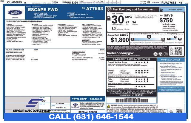 For more information on this 2024 Ford Escape, please call Stream Auto Outlet Islip at (631) 646-1544 or with the contact form on this page. This vehicle's vin number is 1FMCU0MN1RUA77663 and is recorded as being in stock at Stream Auto Outlet Islip at 2232 Sunrise Hwy in Islip. See all cars from this dealership.