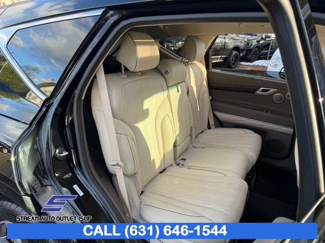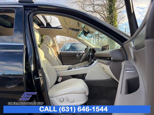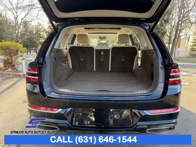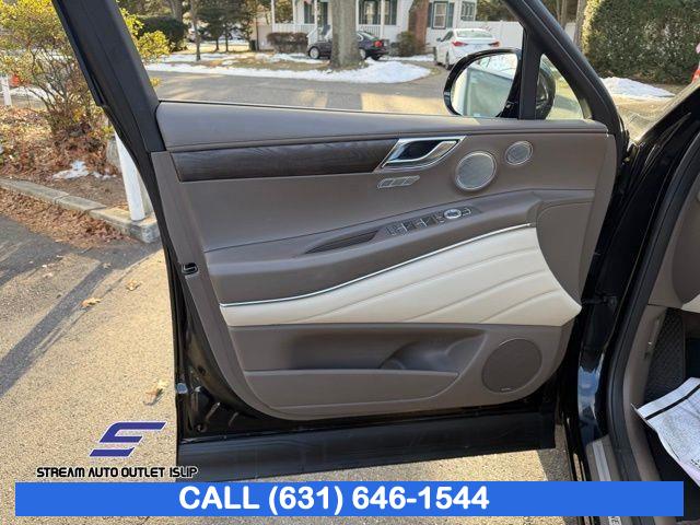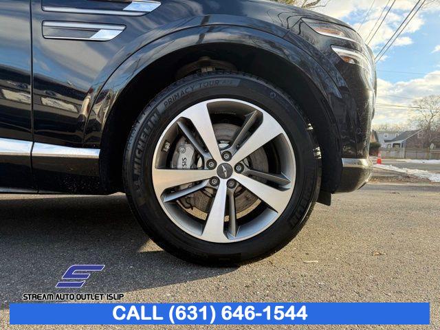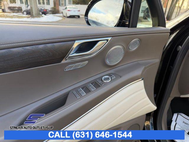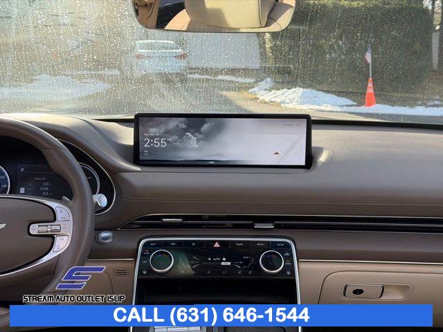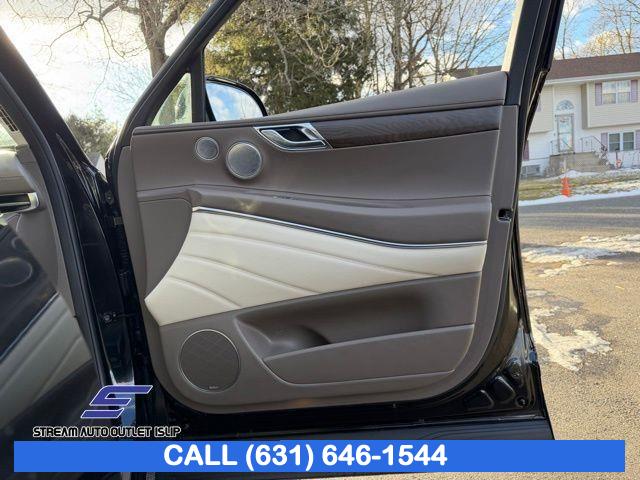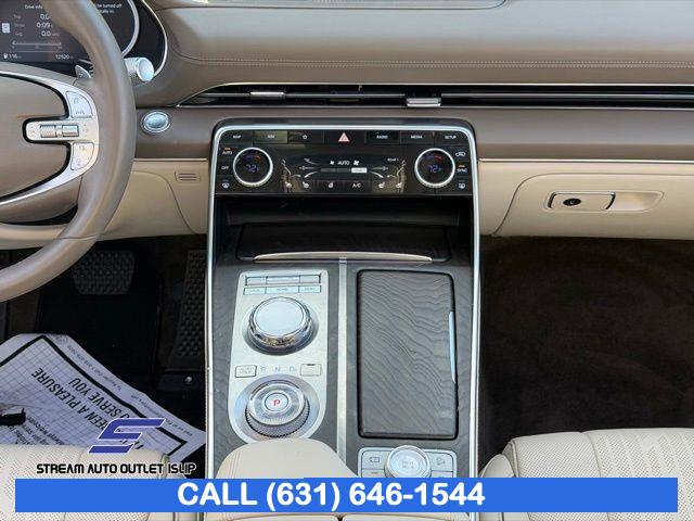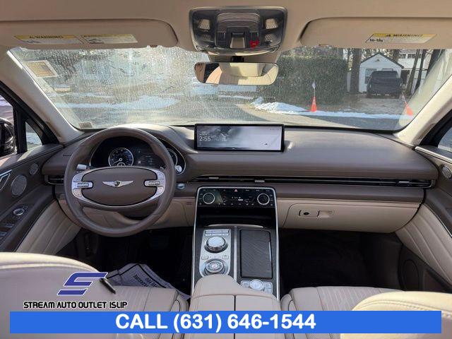 Navigation System, Option Group 02, Advanced Package, 12 Speakers, AM/FM radio: SiriusXM, Radio data system, Radio: AM/FM/SiriusXM/HD Lexicon Prem Audio System, Radio:14.5" Navigation System w/AM/FM/HD Radio, Air Conditioning, Automatic temperature control, Front dual zone A/C, Rear air conditioning, Rear window defroster, Memory seat, Power driver seat, Power steering, Power windows, Remote keyless entry, Steering wheel memory, Steering wheel mounted audio controls, Auto-leveling suspension, Four wheel independent suspension, Speed-sensing steering, Traction control, 4-Wheel Disc Brakes, ABS brakes, Anti-whiplash front head restraints, Dual front impact airbags, Dual front side impact airbags, Emergency communication system: Genesis Connected Services, Front anti-roll bar, Knee airbag, Low tire pressure warning, Monobloc Front Brakes, Occupant sensing airbag, Overhead airbag, Rear anti-roll bar, Rear side impact airbag, Silver Brake Calipers, Panoramic Sunroof, Rear Bumper Applique, Power Liftgate, Brake assist, Electronic Stability Control, Exterior Parking Camera Rear, Auto High-beam Headlights, Delay-off headlights, Fully automatic headlights, Panic alarm, Security system, Speed control, Auto-dimming door mirrors, Bumpers: body-color, Heated door mirrors, Power door mirrors, Remote Smart Parking Assist, Reverse Parking Collision-Avoidance Assist, Spoiler, Turn signal indicator mirrors, Android Auto & Apple CarPlay, Auto tilt-away steering wheel, Auto-dimming Rear-View mirror, Blind-Spot View Monitor, Compass, Driver door bin, Driver vanity mirror, Front reading lights, Garage door transmitter: HomeLink, Genuine wood console insert, Genuine wood dashboard insert, Genuine wood door panel insert, Heated steering wheel, Illuminated entry, Leather steering wheel, Outside temperature display, Overhead console, Passenger vanity mirror, Rear reading lights, Rear seat center armrest, Surround View Monitor, Tachometer, Telescoping steering wheel, Tilt steering wheel, Trip computer, Front Bucket Seats, Front Center Armrest, Heated Front Bucket Seats, Heated front seats, Leather Seating Surfaces, Leatherette Seating Surfaces, Power passenger seat, Split folding rear seat, Ventilated Front Seats, Passenger door bin, Reversible Cargo Tray, Roof Rack Cross Bars, Alloy wheels, Wheel Locks, Wheels: 19" x 8.5J Medium Metallic Gray Alloy, Wheels: 20" x 8.5J Medium Metallic Gray Alloy, Rain sensing wipers, Rear window wiper, Speed-Sensitive Wipers, Variably intermittent wipers, 4.363 Axle Ratio