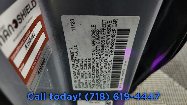 4 Speakers, AM/FM radio, Radio data system, Radio: 160-Watt AM/FM Audio System, Air Conditioning, Automatic temperature control, Rear window defroster, Power steering, Power windows, Remote keyless entry, Steering wheel mounted audio controls, Four wheel independent suspension, Speed-sensing steering, Traction control, 4-Wheel Disc Brakes, ABS brakes, Dual front impact airbags, Dual front side impact airbags, Emergency communication system: HondaLink Assist, Front anti-roll bar, Knee airbag, Low tire pressure warning, Occupant sensing airbag, Overhead airbag, Rear anti-roll bar, Rear side impact airbag, Brake assist, Electronic Stability Control, Lane departure: Lane Keeping Assist System (LKAS) active, Exterior Parking Camera Rear, Auto High-beam Headlights, Delay-off headlights, Fully automatic headlights, Panic alarm, Security system, Adaptive Cruise Control: Adaptive Cruise Control (ACC) with Low-Speed Follow, Speed control, Bumpers: body-color, Power door mirrors, Apple CarPlay/Android Auto, Compass, Driver door bin, Driver vanity mirror, Front reading lights, Illuminated entry, Outside temperature display, Overhead console, Passenger vanity mirror, Rear reading lights, Rear seat center armrest, Tachometer, Telescoping steering wheel, Tilt steering wheel, Trip computer, Fabric Seat Trim, Front Bucket Seats, Front Center Armrest, Passenger door bin, Alloy wheels, Wheels: 17" x 7.5" Blade Silver, Speed-Sensitive Wipers, Variably intermittent wipers