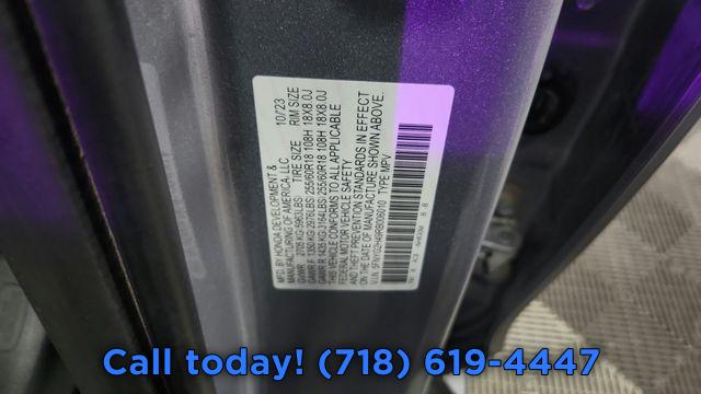 9 Speakers, AM/FM radio: SiriusXM, Radio data system, Radio: 245-Watt Audio System, Air Conditioning, Automatic temperature control, Front dual zone A/C, Rear air conditioning, Rear window defroster, Memory seat, Power driver seat, Power steering, Power windows, Remote keyless entry, Steering wheel mounted audio controls, Four wheel independent suspension, Speed-sensing steering, Traction control, 4-Wheel Disc Brakes, ABS brakes, Dual front impact airbags, Dual front side impact airbags, Emergency communication system: HondaLink Assist, Front anti-roll bar, Knee airbag, Low tire pressure warning, Occupant sensing airbag, Overhead airbag, Rear anti-roll bar, Power Liftgate, Blind Spot Information (BSI) System warning, Brake assist, Electronic Stability Control, Lane departure: Lane Keeping Assist System (LKAS) active, Exterior Parking Camera Rear, Auto High-beam Headlights, Delay-off headlights, Front fog lights, Fully automatic headlights, Panic alarm, Security system, Adaptive Cruise Control: Adaptive Cruise Control (ACC) with Low-Speed Follow, Speed control, Bumpers: body-color, Heated door mirrors, Power door mirrors, Spoiler, Turn signal indicator mirrors, Apple CarPlay/Android Auto, Auto-dimming Rear-View mirror, Driver door bin, Driver vanity mirror, Front reading lights, Garage door transmitter: HomeLink, Illuminated entry, Outside temperature display, Overhead console, Passenger vanity mirror, Rear reading lights, Rear seat center armrest, Tachometer, Telescoping steering wheel, Tilt steering wheel, Trip computer, 3rd row seats: split-bench, Front Bucket Seats, Front Center Armrest, Heated Front Bucket Seats, Heated front seats, Leather Seat Trim, Power passenger seat, Reclining 3rd row seat, Split folding rear seat, Passenger door bin, Alloy wheels, Wheels: 18" Pewter Gray Machined Face, Rear window wiper, Speed-Sensitive Wipers, Variably intermittent wipers, Axle Ratio: 4.167