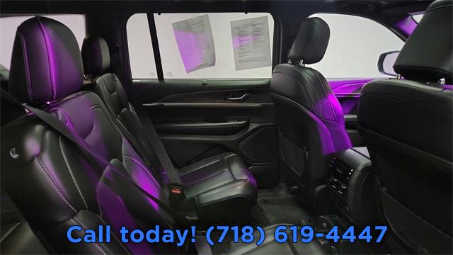 CARFAX One-Owner. Clean CARFAX. 2024 Jeep Grand Cherokee L Limited 2nd Row Manual Window Shades, AM/FM radio: SiriusXM with 360L, Auto High-beam Headlights, Auto-Dimming Exterior Driver Mirror, Automatic temperature control, Capri Leatherette w/Axis II Seats, Dual-Pane Panoramic Sunroof, Front dual zone A/C, Front fog lights, Fully automatic headlights, Integrated Off-Road Camera, Interior Rear Facing Camera, Intersection Collision Assist System, Luxury Tech Group II, Memory Steering Column, Navigation System, ParkSense Front/Rear Park Assist w/Stop, ParkView Rear Back-Up Camera, Passive Entry - Front/Rear Doors, Liftgate, Power Liftgate, Power Tilt/Telescope Steering Column, Quick Order Package 23E, Radio: Uconnect 5 Nav w/10.1" Display, Rain Sensitive Windshield Wipers, Rear air conditioning, Rear Back Up Camera Washer, Rearview Autodim Digital Display Mirror, Remote keyless entry, Steering wheel mounted audio controls, Surround View Camera System, Ventilated Front Seats, Wireless Charging Pad.