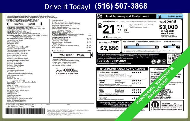One owner. Diamond Black Crystal Pearlcoat exterior and Global Black interior, Limited trim. Heated Seats, Third Row Seat, Moonroof, Nav System, Power Liftgate, 4x4, Aluminum Wheels, Quad Bucket Seats, 9 AMPLIFIED SPEAKERS W/SUBWOOFER , DUAL PANE PANORAMIC SUNROOF , ENGINE: 3.6L V6 24V VVT UPG I W/ESS, TRANSMISSION: 8-SPEED AUTOMATIC (8HP5. Approx. Original Base Sticker Price: $49,900*.KEY FEATURES INCLUDEThird Row Seat, Navigation, 4x4, Quad Bucket Seats, Power Liftgate.OPTION PACKAGESDUAL PANE PANORAMIC SUNROOF Interior Rear Facing Camera, 9 AMPLIFIED SPEAKERS W/SUBWOOFER 506 Watt Amplifier, ENGINE: 3.6L V6 24V VVT UPG I W/ESS (STD). Jeep Limited with Diamond Black Crystal Pearlcoat exterior and Global Black interior features a V6 Cylinder Engine with 293 HP at 6400 RPM*.EXPERTS REPORTGreat Gas Mileage: 25 MPG Hwy.BUY FROM AN AWARD WINNING DEALERWe hand select the finest automobiles possible, recondition as required so you do not have to worry about anything shortly down the road. Our Certified vehicles for example all have more than 50% brake life, most have brand new brakes installed front and rear and it does not end there.WESTBURY VIPAmericas #1 VIP Plus Program includes Complimentary Loaner Cars, UnlimitedOil & Filter changes for 1 yr. & then included with every factorymaintenance, Courtesy Shuttle to work, home or any other location, ExpressLube 30 minutes or less w/ no appointment necessary, Complimentary NYSI, 24/7 Rescue & Towing.