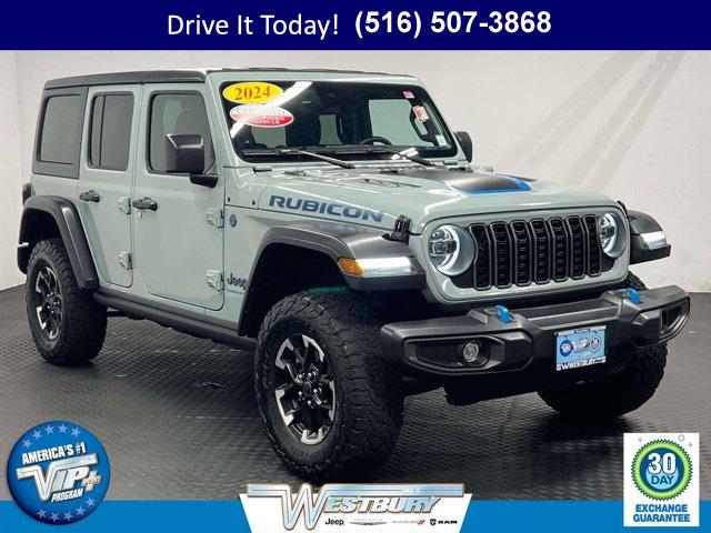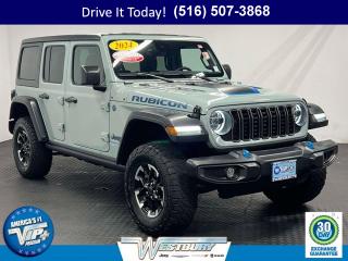 One owner. Earl Clearcoat exterior and Black interior, Rubicon trim. Onboard Communications System, iPod/MP3 Input, Satellite Radio, Back-Up Camera, 4x4, Tow Hitch, Alloy Wheels, BLACK 3-PIECE HARD TOP , ENGINE: 2.0L I4 DOHC DI TURBO PHEV, TRANSMISSION: 8-SPEED AUTO 8P75PH PHE. Turbo. Approx. Original Base Sticker Price: $61,400*.KEY FEATURES INCLUDE4x4, Back-Up Camera, Satellite Radio, iPod/MP3 Input, Onboard Communications System.OPTION PACKAGESBLACK 3-PIECE HARD TOP Freedom Panel Storage Bag, Rear Window Defroster, Rear Window Wiper/Washer, No Soft Top, ENGINE: 2.0L I4 DOHC DI TURBO PHEV (STD) Jeep Rubicon with Earl Clearcoat exterior and Black interior features a 4 Cylinder Engine with 375 HP at 5250 RPM*.MORE ABOUT USWe hand select the finest automobiles possible, recondition as required so you do not have to worry about anything shortly down the road. Our Certified vehicles for example all have more than 50% brake life, most have brand new brakes installed front and rear and it does not end there.WESTBURY VIPAmericas #1 VIP Plus Program includes Complimentary Loaner Cars, UnlimitedOil & Filter changes for 1 yr. & then included with every factorymaintenance, Courtesy Shuttle to work, home or any other location, ExpressLube 30 minutes or less w/ no appointment necessary, Complimentary NYSI, 24/7 Rescue & Towing.