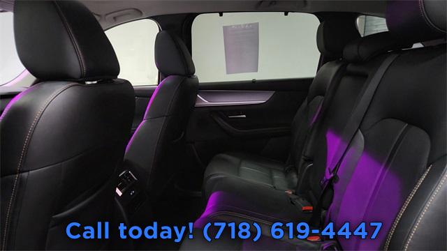 8 Speakers, AM/FM radio, Infotainment System Voice Command, Pandora Internet Radio Integration, Radio Broadcast Data System Program Information, Radio data system, Radio: AM/FM Sound System, Air Conditioning, Automatic temperature control, Front dual zone A/C, Rear air conditioning, Rear window defroster, Heads-Up Display, Power driver seat, Power steering, Power windows, Remote keyless entry, Steering wheel mounted audio controls, Four wheel independent suspension, Speed-sensing steering, Traction control, 4-Wheel Disc Brakes, ABS brakes, Dual front impact airbags, Dual front side impact airbags, Emergency communication system: MAZDA CONNECT, Front anti-roll bar, Knee airbag, Low tire pressure warning, Occupant sensing airbag, Overhead airbag, Rear anti-roll bar, Power moonroof, Power Liftgate, Brake assist, Electronic Stability Control, Exterior Parking Camera Rear, Auto High-beam Headlights, Delay-off headlights, Fully automatic headlights, Panic alarm, Speed control, Bumpers: body-color, Heated door mirrors, Power door mirrors, Spoiler, Turn signal indicator mirrors, AppLink/Apple CarPlay and Android Auto, Compass, Driver door bin, Driver vanity mirror, E911 Automatic Emergency Notification, Front reading lights, Illuminated entry, Leather Shift Knob, Leather steering wheel, Mazda Connected Services, Outside temperature display, Overhead console, Passenger vanity mirror, Rear reading lights, Rear seat center armrest, SMS Text Msg Audio Delivery & Reply, Tachometer, Telescoping steering wheel, Tilt steering wheel, Trip computer, 3rd row seats: bench, Front Bucket Seats, Heated Front Bucket Seats, Heated front seats, Leather Seat Trim, Power passenger seat, Split folding rear seat, Front Center Armrest w/Storage, Passenger door bin, Alloy wheels, Wheels: 19" x 8.5J Aluminum Alloy, Rain sensing wipers, Rear window wiper, Variably intermittent wipers, 3.692 Axle Ratio