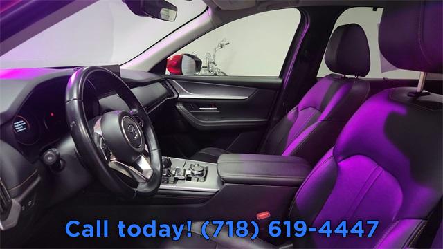 8 Speakers, AM/FM radio, Infotainment System Voice Command, Pandora Internet Radio Integration, Radio Broadcast Data System Program Information, Radio data system, Radio: AM/FM Sound System, Air Conditioning, Automatic temperature control, Front dual zone A/C, Rear air conditioning, Rear window defroster, Heads-Up Display, Power driver seat, Power steering, Power windows, Remote keyless entry, Steering wheel mounted audio controls, Four wheel independent suspension, Speed-sensing steering, Traction control, 4-Wheel Disc Brakes, ABS brakes, Dual front impact airbags, Dual front side impact airbags, Emergency communication system: MAZDA CONNECT, Front anti-roll bar, Knee airbag, Low tire pressure warning, Occupant sensing airbag, Overhead airbag, Rear anti-roll bar, Power moonroof, Power Liftgate, Brake assist, Electronic Stability Control, Exterior Parking Camera Rear, Auto High-beam Headlights, Delay-off headlights, Fully automatic headlights, Panic alarm, Speed control, Bumpers: body-color, Heated door mirrors, Power door mirrors, Soul Red Crystal Metallic Paint Charge, Spoiler, Turn signal indicator mirrors, AppLink/Apple CarPlay and Android Auto, Compass, Driver door bin, Driver vanity mirror, E911 Automatic Emergency Notification, Front reading lights, Illuminated entry, Leather Shift Knob, Leather steering wheel, Mazda Connected Services, Outside temperature display, Overhead console, Passenger vanity mirror, Rear reading lights, Rear seat center armrest, SMS Text Msg Audio Delivery & Reply, Tachometer, Telescoping steering wheel, Tilt steering wheel, Trip computer, 3rd row seats: bench, Front Bucket Seats, Heated Front Bucket Seats, Heated front seats, Leather Seat Trim, Power passenger seat, Split folding rear seat, Front Center Armrest w/Storage, Passenger door bin, Alloy wheels, Wheels: 19" x 8.5J Aluminum Alloy, Rain sensing wipers, Rear window wiper, Variably intermittent wipers, 3.692 Axle Ratio