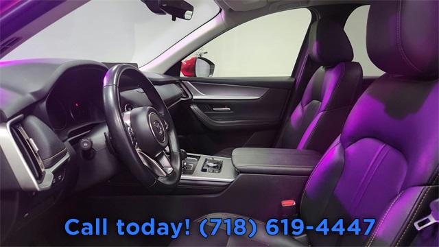 8 Speakers, AM/FM radio, Infotainment System Voice Command, Pandora Internet Radio Integration, Radio Broadcast Data System Program Information, Radio data system, Radio: AM/FM Sound System, Air Conditioning, Automatic temperature control, Front dual zone A/C, Rear air conditioning, Rear window defroster, Heads-Up Display, Power driver seat, Power steering, Power windows, Remote keyless entry, Steering wheel mounted audio controls, Four wheel independent suspension, Speed-sensing steering, Traction control, 4-Wheel Disc Brakes, ABS brakes, Dual front impact airbags, Dual front side impact airbags, Emergency communication system: MAZDA CONNECT, Front anti-roll bar, Knee airbag, Low tire pressure warning, Occupant sensing airbag, Overhead airbag, Rear anti-roll bar, Power moonroof, Power Liftgate, Brake assist, Electronic Stability Control, Exterior Parking Camera Rear, Auto High-beam Headlights, Delay-off headlights, Fully automatic headlights, Panic alarm, Speed control, Bumpers: body-color, Heated door mirrors, Power door mirrors, Soul Red Crystal Metallic Paint Charge, Spoiler, Turn signal indicator mirrors, AppLink/Apple CarPlay and Android Auto, Compass, Driver door bin, Driver vanity mirror, E911 Automatic Emergency Notification, Front reading lights, Illuminated entry, Leather Shift Knob, Leather steering wheel, Mazda Connected Services, Outside temperature display, Overhead console, Passenger vanity mirror, Rear reading lights, Rear seat center armrest, SMS Text Msg Audio Delivery & Reply, Tachometer, Telescoping steering wheel, Tilt steering wheel, Trip computer, 3rd row seats: bench, Front Bucket Seats, Heated Front Bucket Seats, Heated front seats, Leather Seat Trim, Power passenger seat, Split folding rear seat, Front Center Armrest w/Storage, Passenger door bin, Alloy wheels, Wheels: 19" x 8.5J Aluminum Alloy, Rain sensing wipers, Rear window wiper, Variably intermittent wipers, 3.692 Axle Ratio