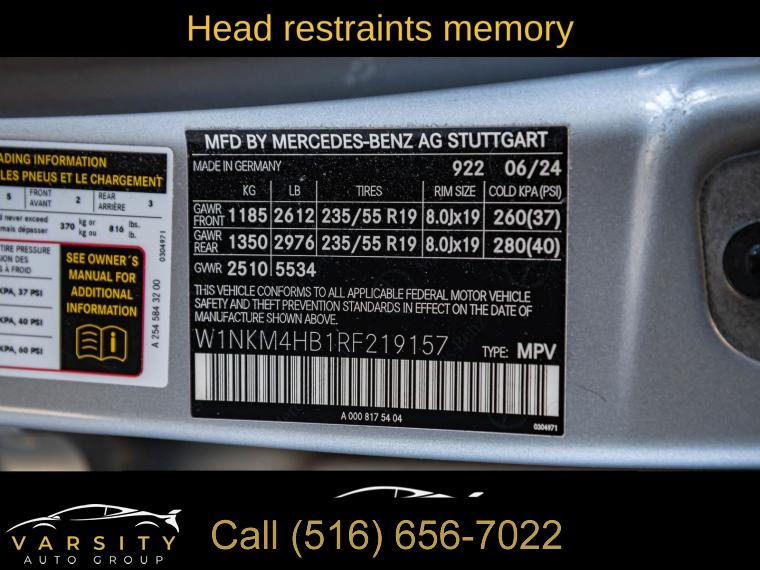 8 Speakers, AM/FM radio: SiriusXM, HD Radio, Premium audio system: MBUX, Radio data system, Radio: AM/FM/HD, SiriusXM Satellite Radio, Air Conditioning, Automatic temperature control, Front dual zone A/C, Rear window defroster, 4-Way Power Lumbar Support, Head restraints memory, Memory seat, Power driver seat, Power steering, Power windows, Remote keyless entry, Steering wheel memory, Steering wheel mounted audio controls, Four wheel independent suspension, Speed-sensing steering, Traction control, 4-Wheel Disc Brakes, ABS brakes, Child-Seat-Sensing Airbag, Dual front impact airbags, Dual front side impact airbags, Emergency communication system: eCall Emergency System, Front anti-roll bar, Knee airbag, Low tire pressure warning, Occupant sensing airbag, Overhead airbag, Power adjustable front head restraints, Rear anti-roll bar, Power Liftgate, Brake assist, Electronic Stability Control, Exterior Parking Camera Rear, Auto High-beam Headlights, Delay-off headlights, Fully automatic headlights, Rear fog lights, Panic alarm, Security system, Speed control, Bumpers: body-color, Heated door mirrors, Power door mirrors, Spoiler, Turn signal indicator mirrors, 11.9" Center Touchscreen Display, 3 USB C-Ports, Apple CarPlay®/Android Auto®, Auto tilt-away steering wheel, Auto-dimming Rear-View mirror, Compass, Driver door bin, Driver vanity mirror, Front reading lights, Garage door transmitter: HomeLink, Genuine wood dashboard insert, Illuminated entry, Inductive Wireless Charging, Leather steering wheel, MBUX Intelligent Vehicle Assistant (Hey Mercedes), Outside temperature display, Overhead console, Passenger vanity mirror, Rear reading lights, Rear seat center armrest, Tachometer, Telescoping steering wheel, Tilt steering wheel, Trip computer, Wireless Android Auto®, Wireless Apple CarPlay®, 16-Way Power Front Seats w/Memory/Lumbar/Thigh Ext, Front Bucket Seats, Front Center Armrest, Heated Front Bucket Seats, Heated front seats, MB-Tex Upholstery, Power passenger seat, Split folding rear seat, Passenger door bin, 18" 10-Spoke Wheels, Alloy wheels, Rain sensing wipers, Rear window wiper, Variably intermittent wipers, TBD Axle Ratio, The Price you See, is the Price You Pay!!!