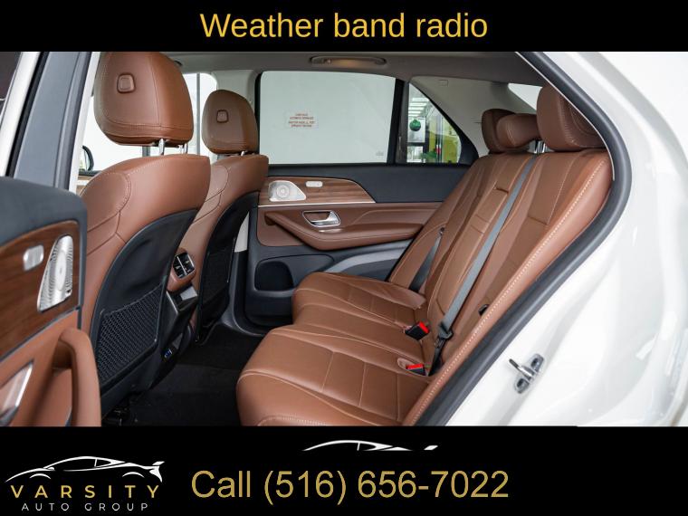 Navigation system: MBUX, AMG® Line Exterior, Driver Assistance Package, Exclusive Trim, Winter Package, 8 Speakers, AM/FM radio: SiriusXM, Burmester® Surround Sound System w/Dolby Atmos, HERMES Communications Module LTE, Music Streaming, Premium audio system: MBUX, Radio data system, Radio: 12.3" Media Display w/Touchscreen, SiriusXM Satellite Radio, Sound Personalization, Weather band radio, Air Conditioning, Automatic temperature control, Front dual zone A/C, Rear window defroster, Heated Rear Seats, Memory seat, Power driver seat, Power steering, Power windows, Remote keyless entry, Steering wheel memory, Steering wheel mounted audio controls, Four wheel independent suspension, Speed-sensing steering, Traction control, 4-Wheel Disc Brakes, ABS brakes, Anti-whiplash front head restraints, Dual front impact airbags, Dual front side impact airbags, Emergency communication system: eCall Emergency System, Front anti-roll bar, Knee airbag, Low tire pressure warning, Occupant sensing airbag, Overhead airbag, Perforated Brake Discs, Power adjustable front head restraints, Rear anti-roll bar, Panorama Power Tilt/Sliding Sunroof, Power moonroof, Power Liftgate, Active Lane Keeping Assist, Brake assist, Electronic Stability Control, Exterior Parking Camera Rear, Auto High-beam Headlights, Delay-off headlights, Fully automatic headlights, Rear fog lights, Panic alarm, Security system, Active Distance Assist DISTRONIC®, Active Steering Assist, Extended Restart in Stop & Go Traffic, Route-Based Speed Adaptation, Speed control, AMG® Line Body Styling, Auto-dimming door mirrors, Bumpers: body-color, Heated door mirrors, Power door mirrors, Soft Close Doors, Spoiler, Turn signal indicator mirrors, Active Lane Change Assist, Active Speed Limit Assist, Apple CarPlay®/Android Auto®, Augmented Video for Navigation, Auto tilt-away steering wheel, Auto-dimming Rear-View mirror, Compass, Crystal Grey Headliner, Driver door bin, Driver vanity mirror, First Aid Kit, Front reading lights, Garage door transmitter: HomeLink, Heated Power Front Seats w/Memory, Heated Steering Wheel, Illuminated entry, Leather steering wheel, MB Navigation, Outside temperature display, Passenger vanity mirror, Rear reading lights, Rear seat center armrest, Tachometer, Telescoping steering wheel, Tilt steering wheel, Trip computer, Wireless Charging, Wireless Smartphone Integration, Front Bucket Seats, Front Center Armrest, Heated front seats, MB-Tex Upholstery, Power passenger seat, Split folding rear seat, Ventilated Front Seats, Load Sill Protection, Passenger door bin, Increased Towing Capacity, Trailer Hitch, Alloy wheels, Black Wheel Locking Bolts, Wheels: 21" AMG® Multispoke, Heated Washer System, Rain sensing wipers, Rear window wiper, Speed-Sensitive Wipers, TBD Axle Ratio, The Price you See, is the Price You Pay!!!, Mercedes-Benz GLE 350 4MATIC, Polar White, Bahia Brown/Black interior, One Owner, Clean CARFAX, AMG Line Exterior, Burmester Surround Sound System w/Dolby Atmos