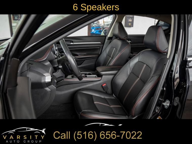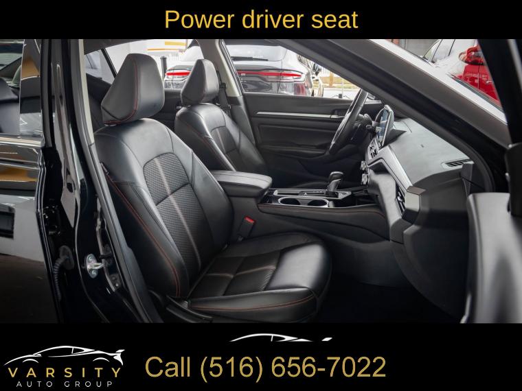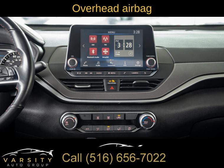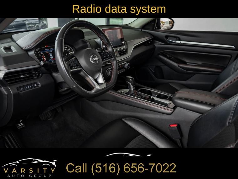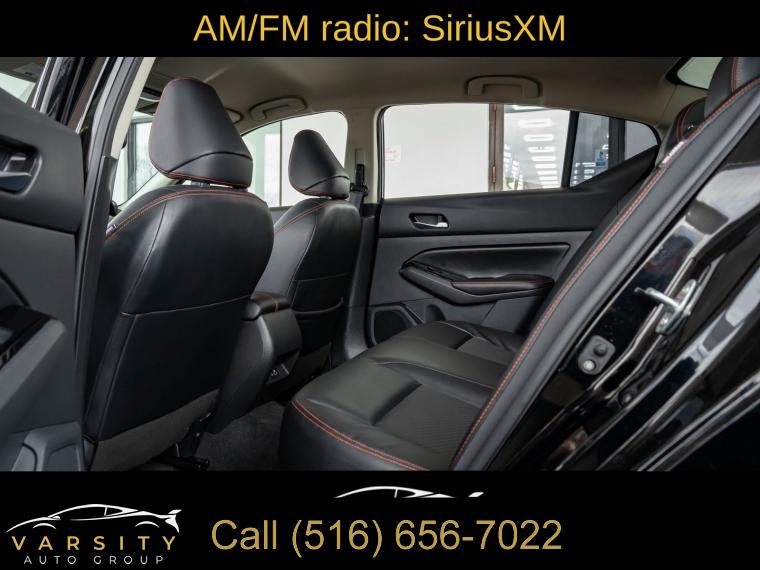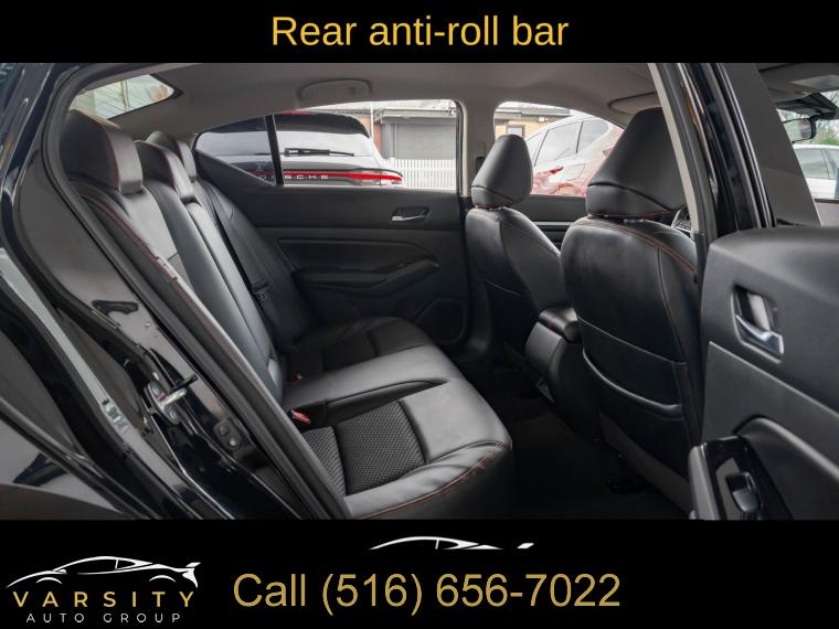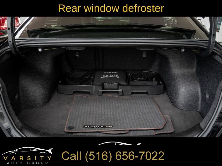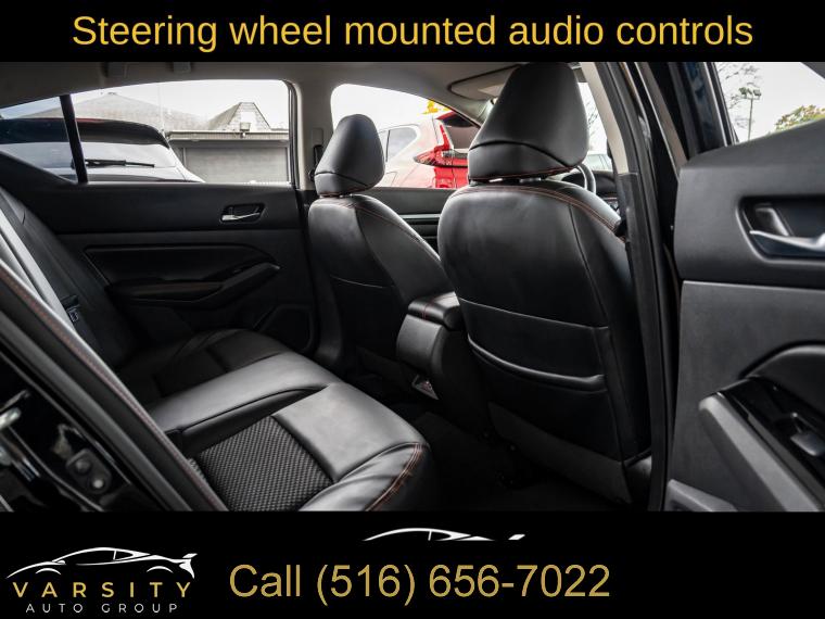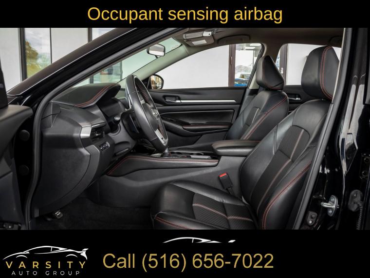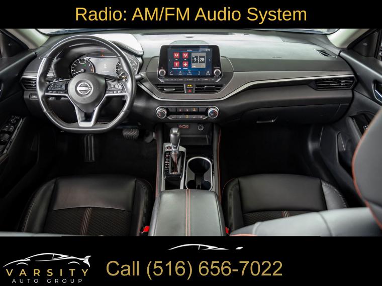 6 Speakers, AM/FM radio: SiriusXM, Radio data system, Radio: AM/FM Audio System, Air Conditioning, Rear window defroster, Power driver seat, Power steering, Power windows, Remote keyless entry, Steering wheel mounted audio controls, Four wheel independent suspension, Speed-sensing steering, Traction control, 4-Wheel Disc Brakes, ABS brakes, Dual front impact airbags, Dual front side impact airbags, Front anti-roll bar, Knee airbag, Low tire pressure warning, Occupant sensing airbag, Overhead airbag, Rear anti-roll bar, Rear side impact airbag, Blind Spot Warning, Brake assist, Electronic Stability Control, Rear Parking Sensors, Auto High-beam Headlights, Delay-off headlights, Fully automatic headlights, Panic alarm, Security system, Speed control, Body-Colored Splash Guards, Bumpers: body-color, Power door mirrors, Driver door bin, Driver vanity mirror, Front reading lights, Illuminated entry, Leather Shift Knob, NissanConnect featuring Apple CarPlay, Outside temperature display, Overhead console, Passenger vanity mirror, Rear reading lights, Rear seat center armrest, SR Floor Mats/Trunk Mat/Hideaway Nets, Tachometer, Telescoping steering wheel, Tilt steering wheel, Trip computer, Front Bucket Seats, Front Center Armrest, Split folding rear seat, Sport Seat Trim, Unique Sport Seats, Passenger door bin, Trunk Organizer Tray, Alloy wheels, Wheels: 19" Sport Alloy, Speed-Sensitive Wipers, Variably intermittent wipers, Nissan Altima 2.5 SR, Super Black Clearcoat, Sport interior, One Owner, Clean CARFAX