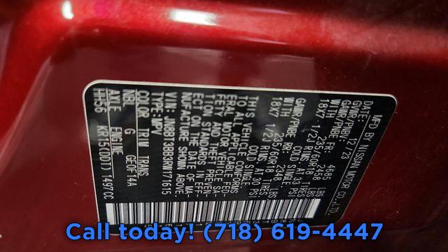 6 Speakers, AM/FM radio: SiriusXM, Radio data system, Radio: AM/FM NissanConnect, Air Conditioning, Automatic temperature control, Front dual zone A/C, Rear window defroster, Power driver seat, Power steering, Power windows, Remote keyless entry, Steering wheel mounted audio controls, Four wheel independent suspension, Traction control, 4-Wheel Disc Brakes, ABS brakes, Dual front impact airbags, Dual front side impact airbags, Emergency communication system: NissanConnect Services, Front anti-roll bar, Knee airbag, Low tire pressure warning, Occupant sensing airbag, Overhead airbag, Rear anti-roll bar, Rear side impact airbag, Power Liftgate, Brake assist, Electronic Stability Control, Rear Parking Sensors, Auto High-beam Headlights, Delay-off headlights, Fully automatic headlights, Panic alarm, Speed control, Bumpers: body-color, Heated door mirrors, Power door mirrors, Spoiler, Driver door bin, Driver vanity mirror, Front reading lights, Illuminated entry, NissanConnect featuring Apple CarPlay and Android Auto, Outside temperature display, Overhead console, Passenger vanity mirror, Rear seat center armrest, Tachometer, Telescoping steering wheel, Tilt steering wheel, Trip computer, Cloth Seat Trim w/Patterned Inserts, Front Bucket Seats, Front Center Armrest, Split folding rear seat, Passenger door bin, Alloy wheels, Wheels: 18" Dark Painted Machine Finished Alloy, Rear window wiper, Speed-Sensitive Wipers, Variably intermittent wipers, 5.676 Axle Ratio