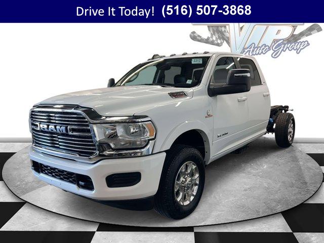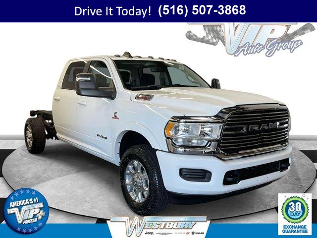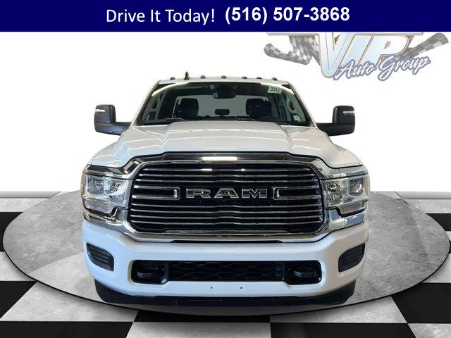 BRIGHT WHITE CLEARCOAT, TRANSMISSION: 6-SPEED AUTO AISIN AS69RC HD -inc: Urethane Shift Control Leather Wrapped Shift Control (STD), BLACK LEATHER TRIMMED BUCKET SEATS -inc: Bucket Seats High Back Seats Power 2-Way Passenger Lumbar Adjust Rear 60/40 Folding Seat 4 Way Front Headrests Heated Front Seats Heated Steering Wheel Power Adjust 8-Way Driver Seat Folding Flat Load Floor Storage 2 Way Rear Headrest Seat Power Adjust 8-Way Front Passenger Seat Front Seat Back Map Pockets Full Length Upgraded Floor Console, 3.73 AXLE RATIO (STD), QUICK ORDER PACKAGE 2YH LARAMIE -inc: Engine: 6.7L I6 Cummins Turbo Diesel Transmission: 6-Speed Auto Aisin AS69RC HD Google Android Auto Door Sill Scuff Pads Leather Wrapped Steering Wheel Black-Out Tape Power 2-Way Passenger Lumbar Adjust Glove Box Lamp 4 Way Front Headrests 115V Auxiliary Rear Power Outlet Front Armrest w/Cupholders Media Hub w/2 Charge Only USBs Heated Front Seats 8.4 Touchscreen Display Alexa Built-In Power Adjust 8-Way Front Passenger Seat RAM Door Badges Apple CarPlay Overhead Cupholder Lamp Premium Overhead Console Locking Lower Glove Box Disassociated Touchscreen Display High Back Seats Body Insulation Dual Glove Boxes LED Interior Lighting 400W Inverter Front Center Seat Cushion Storage LED Dome Lamp w/On/Off Switch Universal Garage Door Opener Satin Chrome Key Fob Acoustic Front Door Glass Chrome Billets/Accents Grille Folding Flat Load Floor Storage Sun Visors w/Illuminated Vanity Mirrors Integrated Center Stack Radio R, VOLTAGE MONITORING AUTO IDLE UP SYSTEM, ENGINE: 6.7L I6 CUMMINS TURBO DIESEL -inc: Selective Catalytic Reduction (Urea) Dual 730 Amp Maintenance Free Batteries Cummins Turbo Diesel Badge Current Generation Engine Controller Smart Diesel Exhaust Brake Supplemental Heater B-20 Bio Diesel Capability (STD), TRAILER BRAKE CONTROL -inc: Trailer Light Check, CARGO & CHMSL LAMP, WHEELS: 18 X 8.0 POLISHED ALUMINUM (STD), TIRES: LT275/70R18E BSW ON/OFF ROAD (STD), ELECTRICAL ACCESSORY GROUP, REAR BACKUP ALARM, FRONT LICENSE PLATE BRACKET, DUAL ALTERNATORS RATED AT 440 AMPS, GVWR: 12 000 LBS (STD)