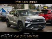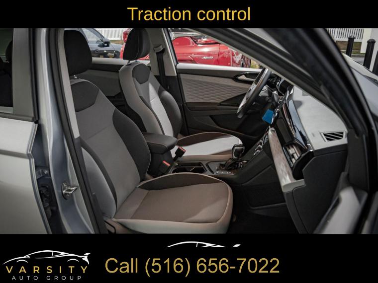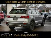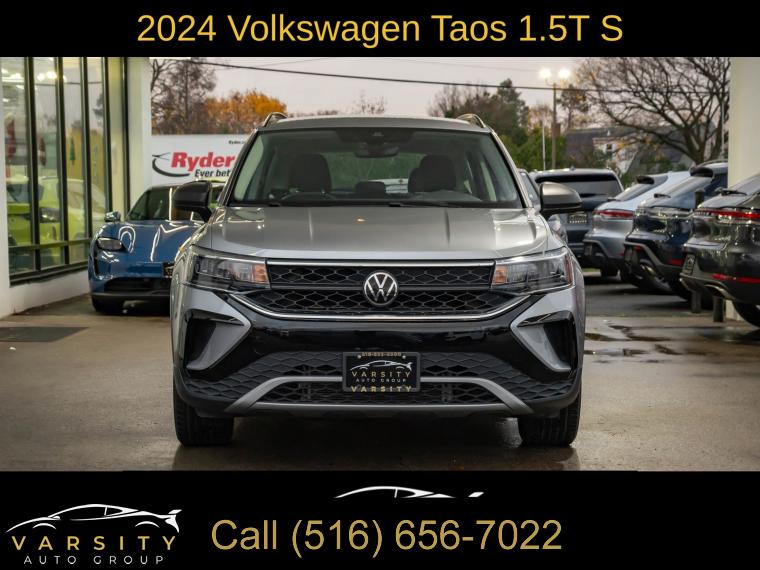 2024 Volkswagen Taos 1.5T S, Pyrite Silver Metallic, Gray/Black w/Cloth Seating Surfaces, One Owner, Clean CARFAX, 3.23 Axle Ratio, 4-Wheel Disc Brakes, 6 Speakers, ABS brakes, Active Blind Spot Monitor, Air Conditioning, Alloy wheels, AM/FM radio, Auto High-beam Headlights, Brake assist, Bumpers: body-color, Cloth Seating Surfaces, Compass, Delay-off headlights, Driver door bin, Driver vanity mirror, Dual front impact airbags, Dual front side impact airbags, Electronic Stability Control, Emergency communication system: VW Car-Net Safe & Secure 5-year, Exterior Parking Camera Rear, Front anti-roll bar, Front Bucket Seats, Front Center Armrest, Front reading lights, Front Strut Rear Torsion Beam Suspension, Front wheel independent suspension, Fully automatic headlights, Heated steering wheel, Illuminated entry, Leather Shift Knob, Low tire pressure warning, Occupant sensing airbag, Outside temperature display, Overhead airbag, Overhead console, Panic alarm, Passenger door bin, Passenger vanity mirror, Power door mirrors, Power steering, Power windows, Radio data system, Radio: Composition Color AM/FM, Rain sensing wipers, Rear anti-roll bar, Rear seat center armrest, Rear window defroster, Rear window wiper, Remote keyless entry, Roof rack: rails only, Speed control, Speed-sensing steering, Split folding rear seat, Spoiler, Steering wheel mounted audio controls, Tachometer, Telescoping steering wheel, Tilt steering wheel, Traction control, Trip computer, Variably intermittent wipers, VW Care, Wheels: 17" Silver Painted Alloy. Pyrite Silver Metallic 2024 Volkswagen Taos 1.5T S FWD 8-Speed Automatic with Tiptronic 1.5L I4 Turbocharged DOHC 16V LEV3-SULEV30 158hp Odometer is 11072 miles below market average! 28/36 City/Highway MPG