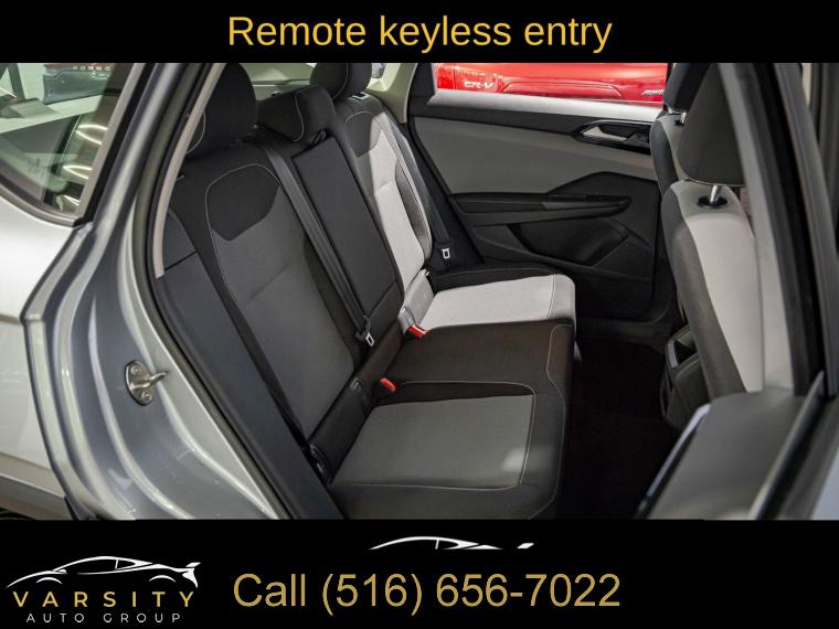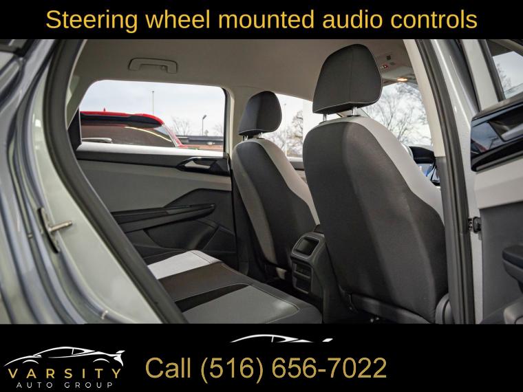 6 Speakers, AM/FM radio, Radio data system, Radio: Composition Color AM/FM, Air Conditioning, Rear window defroster, Power steering, Power windows, Remote keyless entry, Steering wheel mounted audio controls, Speed-sensing steering, Traction control, 4-Wheel Disc Brakes, ABS brakes, Active Blind Spot Monitor, Dual front impact airbags, Dual front side impact airbags, Emergency communication system: VW Car-Net Safe & Secure 5-year, Front anti-roll bar, Front wheel independent suspension, Low tire pressure warning, Occupant sensing airbag, Overhead airbag, Rear anti-roll bar, Brake assist, Electronic Stability Control, Exterior Parking Camera Rear, Auto High-beam Headlights, Delay-off headlights, Fully automatic headlights, Panic alarm, Speed control, Bumpers: body-color, Front Strut Rear Torsion Beam Suspension, Power door mirrors, Roof rack: rails only, Spoiler, VW Care, Compass, Driver door bin, Driver vanity mirror, Front reading lights, Heated steering wheel, Illuminated entry, Leather Shift Knob, Outside temperature display, Overhead console, Passenger vanity mirror, Rear seat center armrest, Tachometer, Telescoping steering wheel, Tilt steering wheel, Trip computer, Cloth Seating Surfaces, Front Bucket Seats, Front Center Armrest, Split folding rear seat, Passenger door bin, Alloy wheels, Wheels: 17" Silver Painted Alloy, Rain sensing wipers, Rear window wiper, Variably intermittent wipers, 3.23 Axle Ratio, 2024 Volkswagen Taos 1.5T S, Pyrite Silver Metallic, Gray/Black w/Cloth Seating Surfaces, One Owner, Clean CARFAX