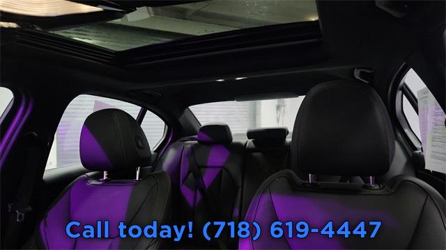 Navigation, Navigation System, Connected Package Pro, 10 Speakers, AM/FM radio: SiriusXM, Hi-Fi Sound System, Radio data system, Radio: AM/FM Audio System, SiriusXM Satellite Radio with 1 Year Subscription, Air Conditioning, Automatic temperature control, Front dual zone A/C, Rear air conditioning, Rear window defroster, Lumbar Support, Memory seat, Power driver seat, Power steering, Power windows, Remote keyless entry, Steering wheel mounted audio controls, Four wheel independent suspension, Speed-sensing steering, Traction control, 4-Wheel Disc Brakes, ABS brakes, Dual front impact airbags, Dual front side impact airbags, Emergency communication system: BMW Assist eCall, Front anti-roll bar, Knee airbag, Low tire pressure warning, Occupant sensing airbag, Overhead airbag, Rear anti-roll bar, Power moonroof, Brake assist, Electronic Stability Control, Exterior Parking Camera Rear, Auto High-beam Headlights, Delay-off headlights, Fully automatic headlights, Panic alarm, Security system, Speed control, Auto-dimming door mirrors, Bumpers: body-color, Heated door mirrors, Power door mirrors, Turn signal indicator mirrors, Apple CarPlay and Android Auto Compatibility, Auto-dimming Rear-View mirror, BMW Assist ECall, BMW TeleServices, Compass, ConnectedDrive Services, Driver door bin, Driver vanity mirror, Front reading lights, Garage door transmitter, Genuine wood console insert, Genuine wood dashboard insert, Illuminated entry, Leather steering wheel, Outside temperature display, Passenger vanity mirror, Personal ESIM 5G, Rear reading lights, Rear seat center armrest, Sport steering wheel, Tachometer, Telescoping steering wheel, Tilt steering wheel, Trip computer, Widescreen Display, Wireless Device Charging, Front Bucket Seats, Front Center Armrest, Heated Front Seats, Heated front seats, Perforated Sensatec Upholstery, Power Front Seats, Power passenger seat, Split folding rear seat, Sport Seats, Passenger door bin, Alloy wheels, Wheels: 18" x 7.5" Dual-Spoke Silver, Rain sensing wipers, Speed-Sensitive Wipers, Variably intermittent wipers