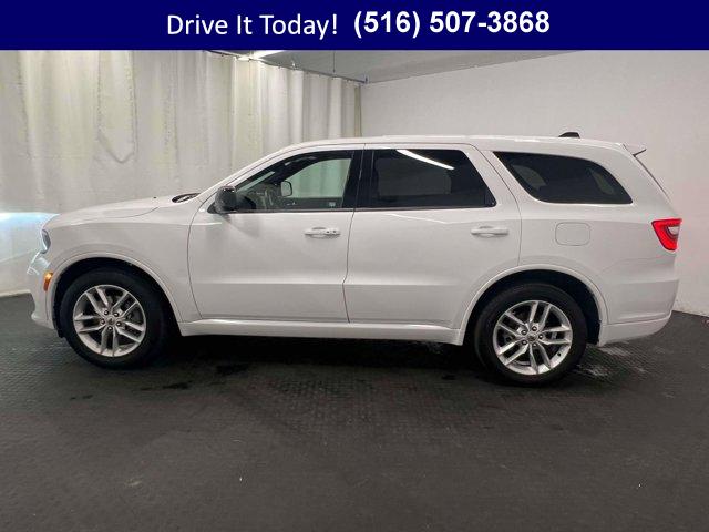 AWD confidence, low miles for its age, and everyday practicality come together in this 2025 Dodge Durango 4D Sport Utility. The White Knuckle Clearcoat exterior pairs cleanly with a Black cloth cabin accented by red stitching, setting a refined tone for family trips, weekday commutes, and weekend hauling across the Northeast. The smooth 3.6L V6 teams with an 8-speed automatic for quiet, composed driving, while the third row ensures flexible seating when you need it and fold-flat utility when you do not. With the power rear gate for easy loading, generous storage, and supportive cloth bucket seats, this Durango is built to make daily life simpler and more comfortable.This cabin is smartly connected. A 10.1 inch multimedia display with Uconnect 5 Nav brings built-in navigation, Apple CarPlay and Android Auto, and SiriusXM with 360L for a broad range of entertainment. Dodge Connect emergency communication capability adds peace of mind. Everyday touches like a heated steering wheel, heated front seats, and a leather steering wheel elevate comfort on chilly mornings. Dual-zone automatic temperature control with rear air conditioning helps everyone find their ideal climate. Steering wheel media controls keep your focus on the road, and the auto-dimming rearview mirror, compass, trip computer, and outside temperature display keep info close at hand. For safety, you get ParkView Rear Back-Up Camera, Electronic Stability Control, 4-wheel disc brakes, and multiple airbags including knee airbags. Heated exterior mirrors, speed-sensitive wipers, and a rear window defroster enhance visibility in variable weather. It is all complemented by the Quick Order Package 2BD GT, gloss black exterior mirrors, and 20 inch Fine Silver alloy wheels & more.This Durango shows 12,540 miles, which is lightly driven for its year. It has the features and flexibility families want, with mileage that reflects thoughtful use and plenty of life ahead.VIP+ ProgramEnjoy lasting value with our VIP+ Program. You receive Unlimited Oil and Filter changes for 1 year, then they are included with every factory maintenance thereafter. You also get Complimentary NYS Inspections, Complimentary Loaner Cars, and Complimentary 24/7 Rescue and Towing. These benefits are For Life and Transferable, adding confidence today and value down the road.More About UsEvery vehicle is hand selected for quality and long-term reliability, and our reconditioning is completed before sale so you can purchase with confidence. Our certified vehicles meet strict standards, including brake life no less than 50 percent, for added assurance. Count on our team for trust, preparation, and peace of mind. We are a proud member of the VIP Auto Group serving the community since 1957. We Will Satisfy You!If you are looking for an affordable used car or a used SUV in NY, this Durango fits the bill with practical space, confident AWD, and desirable comfort features built for year-round use. Commuter-friendly manners, a quiet ride, and the 8-speed automatic help reduce fatigue on longer drives, while the power rear gate, third row, and split-folding seats adapt to changing cargo needs. When the weather turns, AWD traction, heated seats, and a heated steering wheel provide winter confidence. It is an excellent long-term value for families and drivers who want safety, reliability, and flexibility for daily life on Long Island or across New York.New York shoppers are invited to call now, schedule a test drive, or learn more at WestburyJeep.com, where you can view up-to-date inventory and current pricing. This overview is intended as a general guide to features and equipment and may vary by vehicle. Please confirm exact specifications with our team.