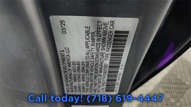 8 Speakers, AM/FM radio, Radio data system, Radio: 180-Watt Audio System, Air Conditioning, Automatic temperature control, Front dual zone A/C, Rear window defroster, Power driver seat, Power steering, Power windows, Remote keyless entry, Steering wheel mounted audio controls, Four wheel independent suspension, Speed-sensing steering, Traction control, 4-Wheel Disc Brakes, ABS brakes, Dual front impact airbags, Dual front side impact airbags, Emergency communication system: HondaLink Assist, Front anti-roll bar, Knee airbag, Low tire pressure warning, Occupant sensing airbag, Overhead airbag, Rear anti-roll bar, Rear side impact airbag, Power moonroof, Blind Spot Information (BSI) System warning, Brake assist, Electronic Stability Control, Lane departure: Lane Keeping Assist System (LKAS) active, Exterior Parking Camera Rear, Auto High-beam Headlights, Delay-off headlights, Fully automatic headlights, Panic alarm, Security system, Adaptive Cruise Control: Adaptive Cruise Control (ACC) with Low-Speed Follow, Speed control, Bumpers: body-color, Heated door mirrors, Power door mirrors, Apple CarPlay/Android Auto, Compass, Driver door bin, Driver vanity mirror, Front reading lights, Illuminated entry, Outside temperature display, Overhead console, Passenger vanity mirror, Rear reading lights, Rear seat center armrest, Tachometer, Telescoping steering wheel, Tilt steering wheel, Trip computer, Fabric Seat Trim, Front Bucket Seats, Front Center Armrest, Heated Front Bucket Seats, Heated front seats, Split folding rear seat, Passenger door bin, Alloy wheels, Wheels: 17" x 7.5J Berlina Black, Speed-Sensitive Wipers, Variably intermittent wipers