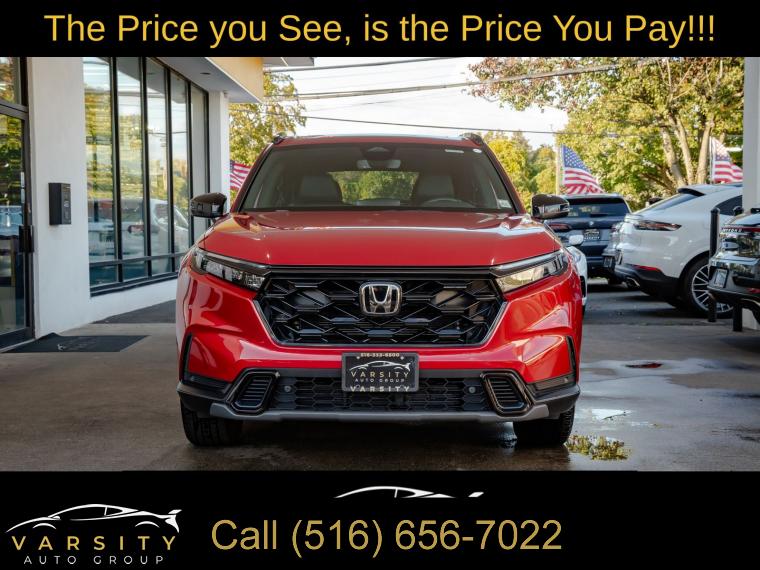 The Price you See, is the Price You Pay!!!, Radiant Red Metallic, Wireless Apple Carplay, Android Auto, All Wheel Drive, Hybrid, Clean CARFAX, 2.0L I4 DOHC 16V, 4-Wheel Disc Brakes, 8 Speakers, ABS brakes, Adaptive Cruise Control: Adaptive Cruise Control (ACC) with Low-Speed Follow, Air Conditioning, Alloy wheels, AM/FM radio: SiriusXM, Auto High-beam Headlights, Auto-dimming Rear-View mirror, Automatic temperature control, Blind Spot Information (BSI) System warning, Brake assist, Bumpers: body-color, Compass, Delay-off headlights, Driver door bin, Driver vanity mirror, Dual front impact airbags, Dual front side impact airbags, Electronic Stability Control, Exterior Parking Camera Rear, Four wheel independent suspension, Front anti-roll bar, Front Bucket Seats, Front Center Armrest, Front dual zone A/C, Front reading lights, Fully automatic headlights, Heated door mirrors, Heated Front Bucket Seats, Heated front seats, Illuminated entry, Knee airbag, Leather Seat Trim, Leather Shift Knob, Leather steering wheel, Low tire pressure warning, Memory seat, Occupant sensing airbag, Outside temperature display, Overhead airbag, Overhead console, Panic alarm, Passenger door bin, Passenger vanity mirror, Power door mirrors, Power driver seat, Power Liftgate, Power moonroof, Power passenger seat, Power steering, Power windows, Radio data system, Radio: 320-Watt AM/FM/HD/SiriusXM Audio System, Rear anti-roll bar, Rear reading lights, Rear seat center armrest, Rear side impact airbag, Rear window defroster, Rear window wiper, Remote keyless entry, Security system, Speed control, Speed-sensing steering, Speed-Sensitive Wipers, Split folding rear seat, Spoiler, Steering wheel mounted audio controls, Telescoping steering wheel, Tilt steering wheel, Traction control, Trip computer, Turn signal indicator mirrors, Variably intermittent wipers, Wheels: 18" Berlina Black Alloy. Radiant Red Metallic 2025 Honda CR-V Hybrid Sport-L AWD eCVT 2.0L I4 DOHC 16V Odometer is 2540 miles below market average! 40/34 City/Highway MPG
