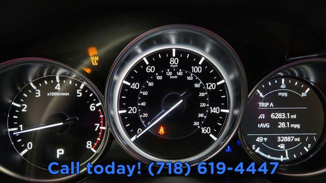 6 Speakers, AM/FM radio, Infotainment System Voice Command, Multifunction Commander Control, Pandora, Radio Broadcast Data System Program Information, Radio data system, Radio: AM/FM/HD Audio System, SMS Text Msg Audio Delivery & Reply, Air Conditioning, Automatic temperature control, Front dual zone A/C, Rear window defroster, Power driver seat, Power steering, Power windows, Remote keyless entry, Steering wheel mounted audio controls, Four wheel independent suspension, Speed-sensing steering, Traction control, 4-Wheel Disc Brakes, ABS brakes, Dual front impact airbags, Dual front side impact airbags, Emergency communication system: MAZDA CONNECT, Front anti-roll bar, Low tire pressure warning, Occupant sensing airbag, Overhead airbag, Rear anti-roll bar, Brake assist, Electronic Stability Control, Exterior Parking Camera Rear, Auto High-beam Headlights, Delay-off headlights, Fully automatic headlights, Panic alarm, Speed control, Bumpers: body-color, Power door mirrors, Soul Red Crystal Metallic Paint, Spoiler, Turn signal indicator mirrors, AppLink/Apple CarPlay and Android Auto, Driver door bin, Driver vanity mirror, E911 Automatic Emergency Notification, Front reading lights, Illuminated entry, Leather Shift Knob, Leather steering wheel, Outside temperature display, Overhead console, Passenger vanity mirror, Rear reading lights, Rear seat center armrest, Tachometer, Telescoping steering wheel, Tilt steering wheel, Trip computer, Front Bucket Seats, Heated Front Bucket Seats, Heated front seats, Leatherette Seat Trim, Split folding rear seat, Front Center Armrest w/Storage, Passenger door bin, Alloy wheels, Wheels: 17" x 7J Aluminum Alloy, Rain sensing wipers, Rear window wiper, Variably intermittent wipers