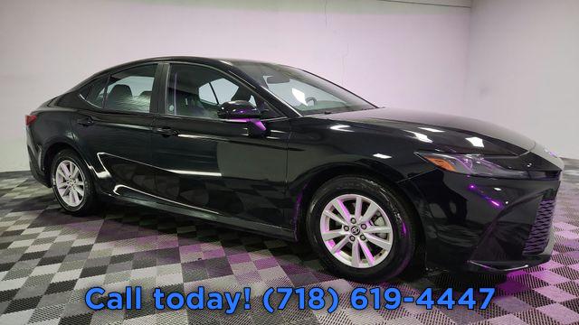 CARFAX One-Owner. Clean CARFAX. 2025 Toyota Camry LE 2.5L 4-Cylinder 16V DOHC, Black w/Fabric Seat Trim, AM/FM radio: SiriusXM, Auto High-beam Headlights, Automatic temperature control, Exterior Parking Camera Rear, Front dual zone A/C, Fully automatic headlights, Radio: Toyota Audio Multimedia w/8" Touchscreen, Remote keyless entry, Steering wheel mounted audio controls.
