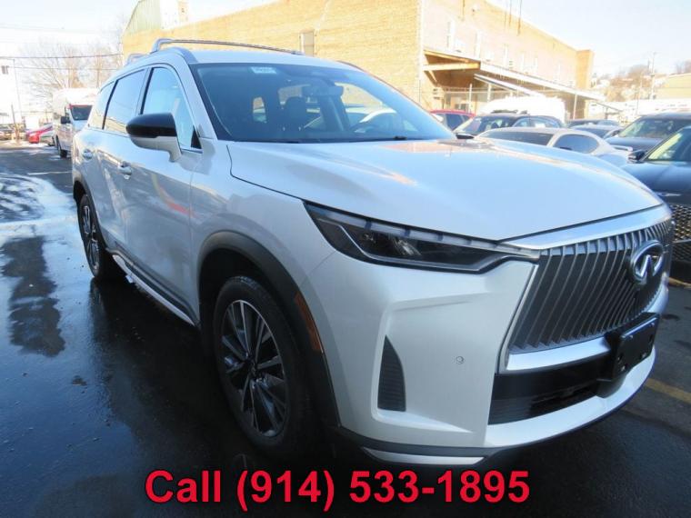 This 2026 INFINITI QX60 4dr LUXE AWD features a 2.0L 4 CYLINDER 4cyl Gasoline engine. It is equipped with a 9 Speed Automatic transmission. The vehicle is Not Specified with a Not Specified interior. It is offered As-Is, extended warranty is available. - Climate Control, Dual Zone Climate Control, Cruise Control, Tinted Windows, Power Steering, Power Mirrors, Leather Steering Wheel, Power Drivers Seat, Power Passenger Seat, Rear Air Conditioning, Clock, Tachometer, Homelink System, Telescoping Steering Wheel, Steering Wheel Radio Controls, Sunroof, Moonroof, Driver Airbag, Passenger Airbag, Security System, Rear Defogger, Intermittent Wipers, AM/FM, Premium Sound System, 3rd Row Seating, Air Conditioned Seats, Aux. Audio Input, Carpeted Floor Mats, Center Arm Rest, Child Proof Door Locks, Daytime Running Lights, Front AC Seats, Front Heated Seats, Heated Mirrors, Overhead Console, Parking Sensors, Power Lift Gate, Rear Heated Seats , Rear Spoiler, Rear Spoiler, Rear Wipers, Rear-Side Airbags, Remote Trunk Lid, Reverse Camera, Roll Stability Control, Side Curtain Airbags, Sliding Rear Window, Tire Pressure Monitor, Vanity Mirrors - Contact Michael Maratto at (914) 533-1895 for more information. -