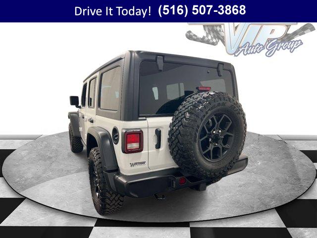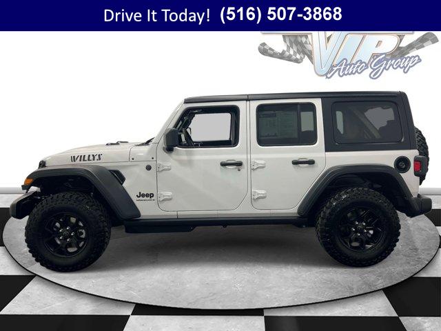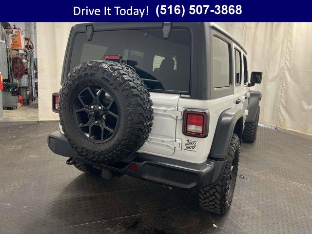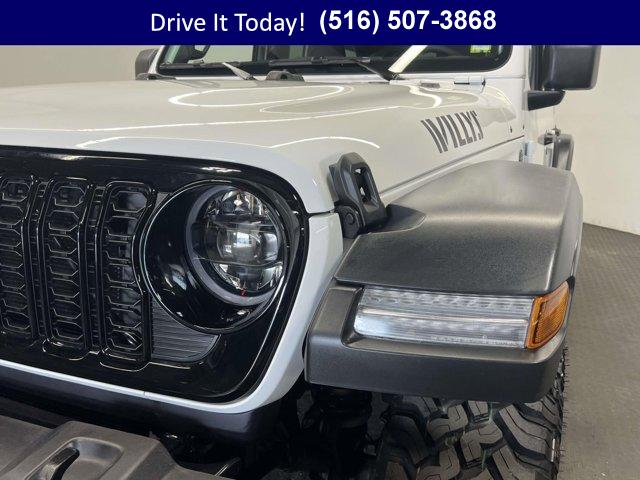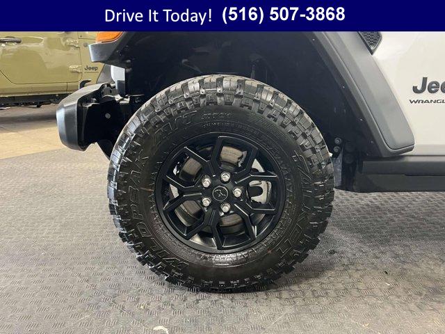 CONVENIENCE GROUP -inc: Emergency/Assistance Call 2-Door Passive Entry Front Door Locks Cluster 7.0 TFT Color Display Universal Garage Door Opener Heated Front Seats Air Conditioning w/Auto Temp Control Heated Steering Wheel Air Filtering, 2.0L I4 DOHC DI TURBO ENGINE W/ESS, 17 X 7.5 PAINTED BLACK WHEELS (STD), 8-SPEED AUTOMATIC 850RE TRANSMISSION -inc: Adaptive Cruise Control w/Stop Anti-Lock 4-Wheel Disc Brakes Dana M200 Rear Axle Selec-Speed Control, INCREASED TRAVEL EXPORT TUNED SUSPENSION (STD), 5 675 LBS GVWR (STD), BRIGHT WHITE CLEARCOAT, BLACK 3-PIECE HARD TOP -inc: Freedom Panel Storage Bag Rear Window Defroster Rear Window Wiper/Washer No Soft Top, BLACK CLOTH LOW-BACK BUCKET SEATS, 4.10 REAR AXLE RATIO (STD), QUICK ORDER PACKAGE 22W WILLYS -inc: 2.0L I4 DOHC DI Turbo Engine w/ESS 8-Speed Automatic 850RE Transmission 7 & 4 Pin Wiring Harness Conventional Differential Front Axle 4-Wheel Drive Swing Gate Decal Black Grille w/Gloss Black Rings Injection Molded Black Rear Bumper Dana M210 Wide HD Tube Front Axle Daytime Running Lamps LED Accents Front LED Fog Lamps LED Premium Reflector Headlamps E-Locker Rear Axle Corning Gorilla Glass Security Alarm Class II Receiver Hitch Mold In Color Bumper w/Gloss Black Advanced Brake Assist Automatic Headlamps Off-Road Plus Mode Willys Hood Decal Full Speed Forward Collision Warning Plus Rock Protection Sill Rails Power Heated Mirrors Enhanced Adaptive Cruise Control Auxiliary Switches Dana M220 Wide Rear Axle Molded in Color Rubicon Highline Flare Premium Wrapped Steering Wheel Sun Visors w/Illuminated Vanity Mirrors, LT285/70R17C BSW MUD TERRAIN TIRES (STD)