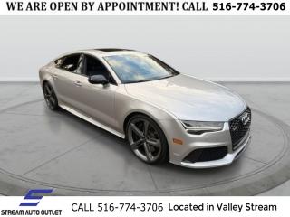 Comments Recent Arrival! 2016 Audi RS 7 4.0T Prestige quattro Prism Silver Crystal Effect quattro 4.0L V8 Turbocharged DOHC 32V ULEV II 560hp Carbon Fiber Front Spoiler, Carbon Fiber Rear Diffuser, Carbon-Optic Package, Comfort Seating Package, Exterior Mirror Housings in High-Gloss Black, Individual Contour Front Seats, Navigation System, Valcona Leather Seat Trim w/o Honeycomb Stitching. BEGIN THE SIMPLE PROCESS. PERSONALIZE THE PAYMENTS THAT FIT YOUR BUDGET, ADD YOUR TRADE-IN INFORMATION, APPLY FOR YOUR AUTO LOAN, SCHEDULE A PICKUP OR DELIVERY DATE. (HOME DELIVERY AVAILABLE*). EVERY VEHICLE HAS BEEN PRICED BELOW COST IN ORDER TO TURN INVENTORY QUICKLY AND PASS ON THE SAVINGS TO YOU! EACH VEHICLE COMES WITH A FREE LIMITED POWERTRAIN WARRANTY AND FREE CARFAX REPORT! WITH THESE SAVINGS THESE VEHICLES WONT LAST. CALL TO GET YOUR GREAT DEAL TODAY! (516) 774-3706. When it comes to offering an array of lending sources for used car buyers of varying credit levels, it's tough to top Stream Auto Outlet and our dedicated finance department. As an used car dealer for the people, we proudly specialize in sub-prime lending, so no matter your credit rating, we invite you to apply for auto loans today! No matter if you're looking to put your good credit to use or seeking bad credit financing for your next used car, you can rely on our auto loan professionals to tailor a financing package to your situation. Options Navigation System, Carbon-Optic Package, Comfort Seating Package, 14 Speakers, AM/FM radio: SiriusXM, BOSE Surround Sound System, CD player, DVD-Audio, Radio data system, Radio: Audi MMI Navigation Plus w/AM/FM, Air Conditioning, Automatic temperature control, Front dual zone A/C, HVAC memory, Rear air conditioning, Rear dual zone A/C, Rear window defroster, Heads-Up Display, Memory seat, Power driver seat, Power steering, Power windows, Remote keyless entry, Steering wheel memory, Steering wheel mounted audio controls, Adaptive suspension, Auto-leveling suspension, Four wheel independent suspension, Speed-sensing steering, Traction control, 4-Wheel Disc Brakes, ABS brakes, Anti-whiplash front head restraints, Dual front impact airbags, Dual front side impact airbags, Front anti-roll bar, Knee airbag, Low tire pressure warning, Occupant sensing airbag, Overhead airbag, Rear anti-roll bar, Power moonroof, Carbon Fiber Rear Diffuser, Power Liftgate, Brake assist, Electronic Stability Control, Exterior Parking Camera Rear, Delay-off headlights, Front fog lights, Rear fog lights, Panic alarm, Security system, Speed control, Auto-dimming door mirrors, Bumpers: body-color, Carbon Fiber Front Spoiler, Exterior Mirror Housings in High-Gloss Black, Heated door mirrors, Power door mirrors, Spoiler, Turn signal indicator mirrors, Auto tilt-away steering wheel, Auto-dimming Rear-View mirror, Compass, Driver door bin, Driver vanity mirror, Front reading lights, Garage door transmitter: HomeLink, Heated RS Sport Bucket Seats, Illuminated entry, Individual Contour Front Seats, Leather Shift Knob, Leather steering wheel, Outside temperature display, Overhead console, Passenger vanity mirror, Rear reading lights, Rear seat center armrest, Sport steering wheel, Tachometer, Telescoping steering wheel, Tilt steering wheel, Trip computer, Front Bucket Seats, Heated front seats, Power passenger seat, Valcona Leather Seat Trim w/o Honeycomb Stitching, Valcona Leather Seating Surfaces, Front Center Armrest w/Storage, Passenger door bin, Alloy wheels, Wheels: 9.0" x 20" Forged 7-Twin Spoke, Rain sensing wipers, Speed-Sensitive Wipers, Variably intermittent wipers