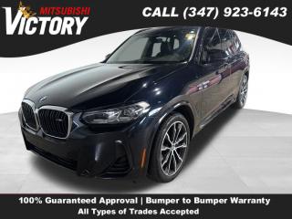 Comments Welcome to Victory Mitsubishi! We offer a combined inventory of 700 cars new and luxury used vehicles. All Used vehicles come with a quality assurance inspection, our New Vehicles have an unprecedented 10-year 100k mile warranty we also have vehicles car for any want or purpose. Come into test drive this car for any want or purpose. Come in to test drive this BMW X3 M40i today! Priced below KBB Fair Purchase Price! *. Clean CARFAX. 2022 BMW X3 M40i Carbon Black Metallic 4D Sport Utility Save yourself Time and Money - Fill out a credit application online at victorymitsubishi.com and get pre-APPROVED! Financing available for all types of credit with low monthly payment that will fit you budget. Down Payment low as $599. Same day delivery. View our entire inventory by visiting our virtual showroom at victorymitsubishi.com - Only 2 blocks away from Exit 13 off I-95 or Minutes from exit 7 on the Hutchinson Parkway. While we make every effort to ensure the data listed here is correct, there may be instances where the pricing, options or vehicle features may be listed incorrectly. Dealer cannot be held liable for data that is listed incorrectly. to see more pictures of this vehicle or call us at (347) 923-6143 today to schedule your test drive. please refer to dealer’s website for exact pricing and for any incentives that we may apply! Our address is 4070 Boston Road, Bronx, NY 10475. * Options Navigation System, Connected Package Pro, 12 Speakers, AM/FM Radio, AM/FM radio: SiriusXM with 360L, ConnectedDrive Services, Hi-Fi Sound System, Radio data system, SiriusXM w/360L, Air Conditioning, Automatic temperature control, Front dual zone A/C, Rear air conditioning, Rear window defroster, Lumbar Support, Memory seat, Power driver seat, Power steering, Power windows, Remote Engine Start, Remote keyless entry, Steering wheel mounted audio controls, Adaptive suspension, Four wheel independent suspension, Speed-sensing steering, Traction control, 4-Wheel Disc Brakes, ABS brakes, Dual front impact airbags, Dual front side impact airbags, Emergency communication system: BMW Assist eCall, Front anti-roll bar, Knee airbag, Low tire pressure warning, Occupant sensing airbag, Overhead airbag, Rear anti-roll bar, Power moonroof, Power Liftgate, Brake assist, Electronic Stability Control, Exterior Parking Camera Rear, Auto High-beam Headlights, Delay-off headlights, Fully automatic headlights, Panic alarm, Security system, Active Driving Assistant Pro, Extended Traffic Jam Assistant, Speed control, Auto-dimming door mirrors, Bumpers: body-color, Heated door mirrors, Power door mirrors, Roof rack: rails only, Spoiler, Turn signal indicator mirrors, Without Exterior Lines Designation (DISC), Apple CarPlay & Android Auto Compatibility, Auto-dimming Rear-View mirror, BMW Assist eCall, BMW TeleServices, Driver door bin, Driver vanity mirror, Enhanced Bluetooth, Front reading lights, Garage door transmitter, Heated Steering Wheel, Illuminated entry, Increased Top Speed Limiter (DISC), Live Cockpit Pro w/Navigation, Outside temperature display, Passenger vanity mirror, Rear reading lights, Rear seat center armrest, Sport steering wheel, Tachometer, Telescoping steering wheel, Tilt steering wheel, Trip computer, WiFi Hotspot, Front Bucket Seats, Front Center Armrest, Heated Front Seats, Perforated SensaTec Upholstery, Power Front Seats, Power passenger seat, Split folding rear seat, Sport Seats, Passenger door bin, Alloy wheels, Wheels: 19" x 7.5" M Y-Spoke Bi-Color (Style 887M), Wheels: 20" x 8.0" Fr & 20" x 9.5" Rr M Dbl Spoke, Rear Manual Side Window Shades, Rain sensing wipers, Rear window wiper, Speed-Sensitive Wipers, Variably intermittent wipers, 3.385 Axle Ratio,
