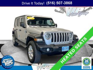 Comments Certified Pre-Owned confidence meets legendary 4x4 capability in this 2022 Jeep Wrangler 4D Sport Utility. Powered by the proven 3.6L V6 with an 8-speed automatic and Jeep 4WD, it delivers a smooth, composed drive for daily commuting and weekend escapes alike. The Silver Zynith Clearcoat exterior pairs neatly with a black cloth cabin, creating a clean, modern look that feels comfortable and refined. Cloth low-back bucket seats, Normal Duty Suspension, and the Black 3-piece hard top help keep the ride relaxed, quiet, and usable every day, while side steps make getting in and out easy for everyone.Stay connected and in control with the Uconnect 4 multimedia display featuring a 7 inch screen and Apple CarPlay/Android Auto for seamless smartphone integration. The Technology Group brings a 7.0 inch color driver display and steering wheel media controls, and the Convenience Group adds practical touches like a Universal Garage Door Opener and Remote Keyless Entry. The Cold Weather Group makes winter mornings easier with heated front seats, a heated steering wheel, and power heated mirrors. ParkView Rear Back-Up Camera boosts confidence in tight spots. SiriusXM Satellite Radio and the SiriusXM Guardian emergency communication system keep you informed and entertained. Corning Gorilla Glass helps the windshield stand up to everyday chips, while Deep Tint windows reduce glare and heat. Automatic headlamps, air conditioning with automatic temperature control, rear defroster and wiper, security alarm, and speed sensitive power locks round out everyday ease. A Jeep Trail Rated Kit, Freedom panel storage bag, and 17 inch wheels underline go-anywhere readiness & more.With only 25,743 miles, this Wrangler has low miles for its age, showing the kind of lightly driven use shoppers appreciate compared to many similar models on the market.VIP+ ProgramEnjoy real ownership perks with our VIP+ Program. You get Unlimited Oil and Filter changes for 1 year, then included with every factory maintenance thereafter. Take advantage of Complimentary NYS Inspections, Complimentary Loaner Cars, and Complimentary 24/7 Rescue and Towing. These benefits are For Life and Transferable, adding long-term value and peace of mind for you and the next owner.Purchase with confidence knowing this certified Jeep Wrangler is a Certified Pre-Owned Vehicle (CPOV). It includes a 7-Year / 100,000-Mile Powertrain Limited Warranty, a comprehensive 125-Point Inspection, 24-Hour Roadside Assistance, a Rental Car Allowance, and a CARFAX Vehicle History Report. This is added assurance designed to make every mile more worry-free.More About UsEvery vehicle we offer is hand selected for quality and long-term reliability, then professionally reconditioned before sale so you can purchase with confidence. Our certified vehicles meet strict standards, including brake life of no less than 50 percent, to help ensure safety and durability. Count on our team for trust, preparation, and peace of mind. We are a proud member of the VIP Auto Group serving our community since 1957. We Will Satisfy You!Whether you are tackling weekday commutes or weekend trails, this certified Jeep Wrangler blends winter confidence, safety-minded tech, and lasting value. If you're looking for a used car on Long Island that feels ready for all seasons, this Wrangler?s 4WD, Cold Weather Group, and hard top setup are ideal. It is an excellent fit for New York driving, from city streets to snowy backroads, offering a smart balance of capability, comfort, and an affordable used car budget.Ready to make it yours? Call now to learn more, schedule a test drive, or see why this certified Jeep Wrangler stands out. Visit WestburyJeep.com for up-to-date inventory and current pricing. This overview is intended as a general guide; actual equipment, features, and descriptions may vary by vehicle. Please confirm details with our team prior to purchase. Options BLACK CLOTH LOW-BACK BUCKET SEATS, ENGINE: 3.6L V6 24V VVT UPG I W/ESS (STD), SILVER ZYNITH CLEARCOAT, JEEP TRAIL RATED KIT, CORNING GORILLA GLASS, WHEELS: 17 X 7.5 TECH SILVER ALUMINUM (STD), BLACK 3-PIECE HARD TOP -inc: Freedom Panel Storage Bag Rear Window Defroster Rear Window Wiper/Washer No Soft Top, QUICK ORDER PACKAGE 24S SPORT S -inc: Engine: 3.6L V6 24V VVT UPG I w/ESS Transmission: 8-Speed Automatic (850RE) Front 1-Touch Down Power Windows Speed Sensitive Power Locks Sport S Power Heated Mirrors Automatic Headlamps Leather Wrapped Steering Wheel Security Alarm Remote Keyless Entry Sun Visors w/Illuminated Vanity Mirrors, SIRIUSXM SATELLITE RADIO -inc: SiriusXM Radio Service, 2-DOOR PASSIVE ENTRY FRONT DOOR LOCKS, MOPAR ALL-WEATHER FLOOR MATS, 3.45 REAR AXLE RATIO (STD), COLD WEATHER GROUP -inc: Heated Steering Wheel Heated Front Seats Leather Wrapped Steering Wheel, TECHNOLOGY GROUP -inc: Air Conditioning w/Auto Temp Control 2-Door Passive Entry Front Door Locks Cluster 7.0 TFT Color Display SiriusXM Satellite Radio SiriusXM Radio Service Air Filtering, SIDE STEPS, TIRES: 245/75R17 ALL SEASON (STD), CONVENIENCE GROUP -inc: Universal Garage Door Opener, TRANSMISSION: 8-SPEED AUTOMATIC (850RE) -inc: Anti-Lock 4-Wheel Disc Brakes Tip Start Dana M200 Rear Axle Selec-Speed Control, GVWR: 5 400 LBS (STD)